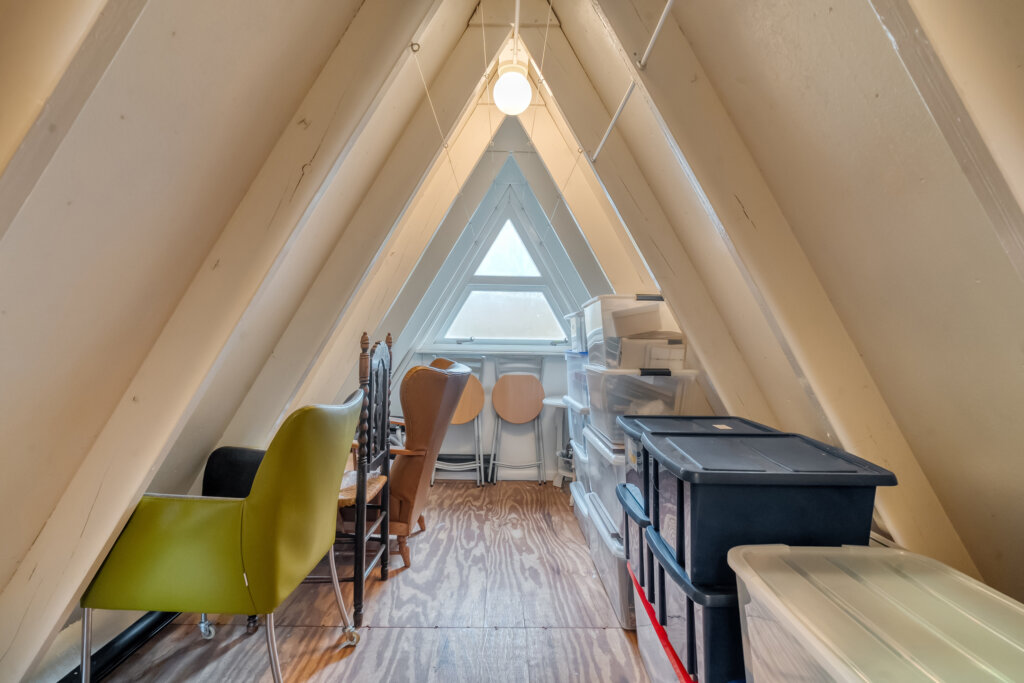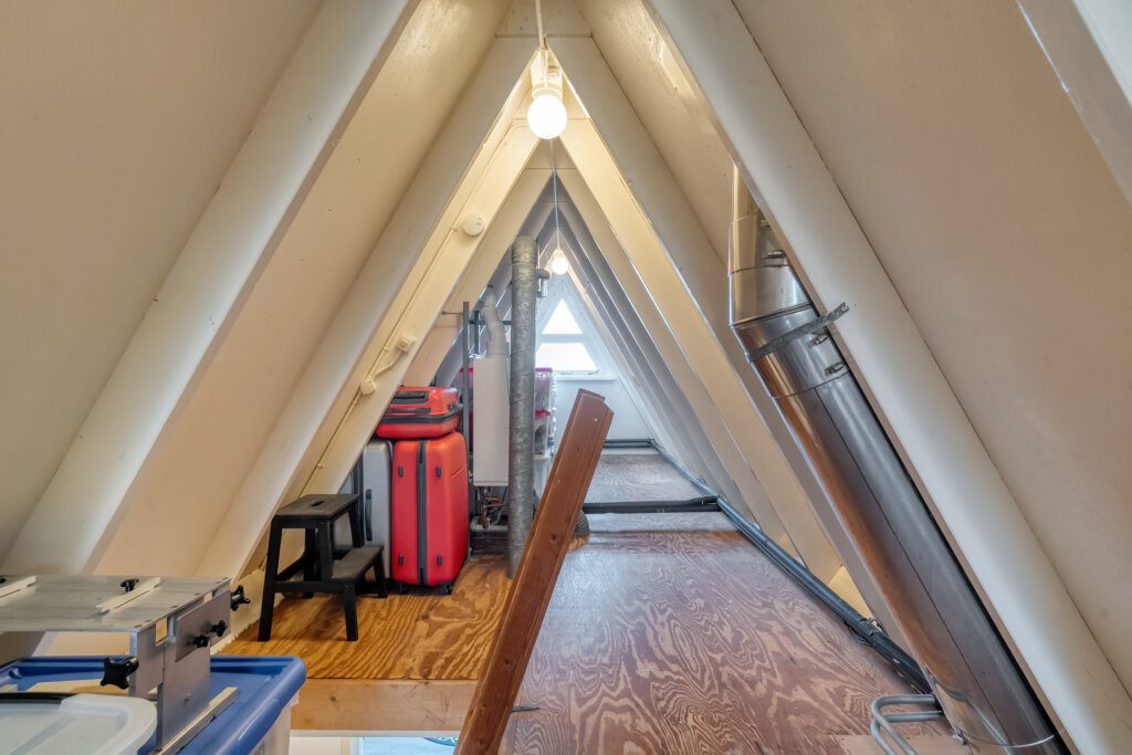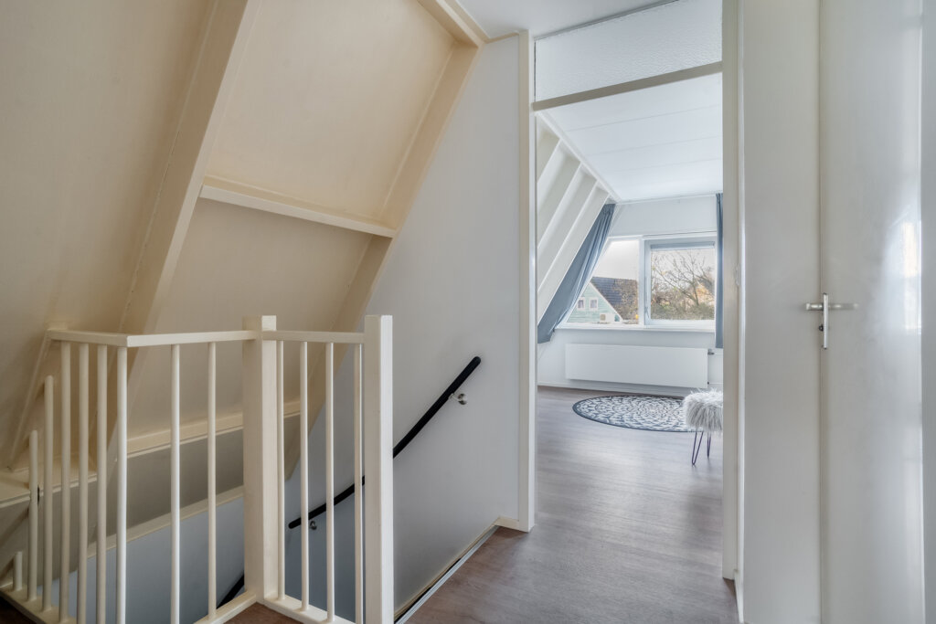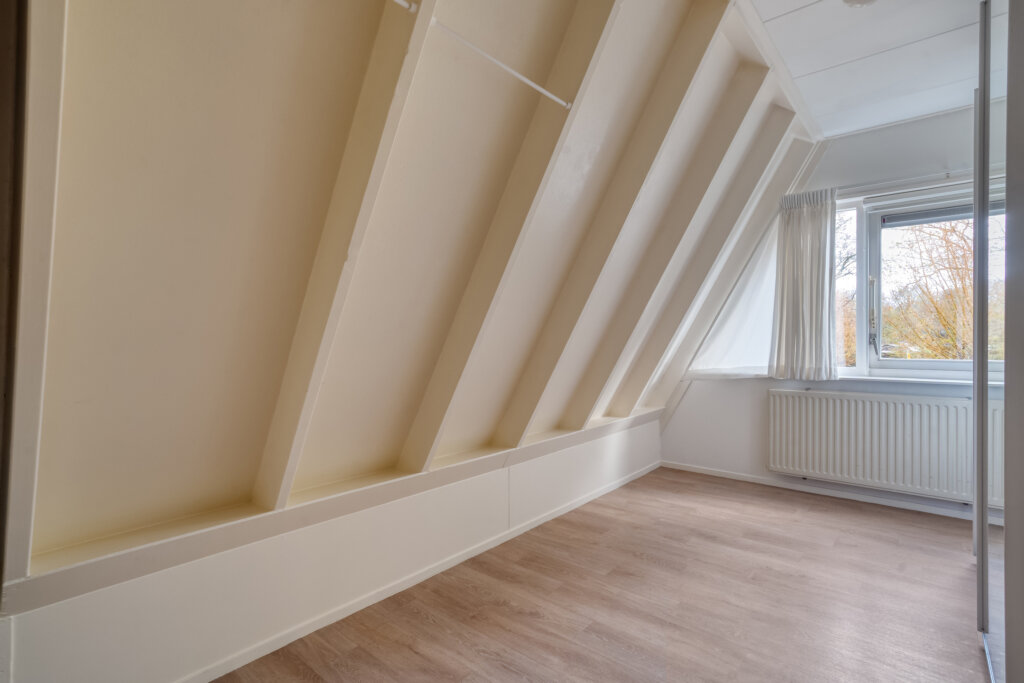 Via de overloop bereik je de bergzolder, die toegankelijk is via een vlizotrap. Hier bevindt zich ook de cv-opstelling. Dankzij de fijne hoogte en de twee gevelramen is dit meer dan alleen een opslagruimte. Met het plaatsen van een vaste trap kun je hier eenvoudig een extra slaapkamer, werkkamer of hobbyruimte creëren, waardoor de woning nog meer mogelijkheden krijgt voor de toekomst.