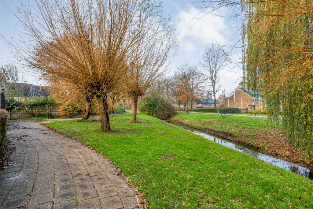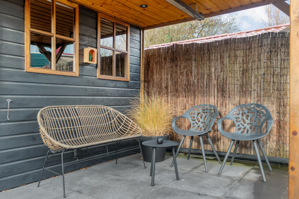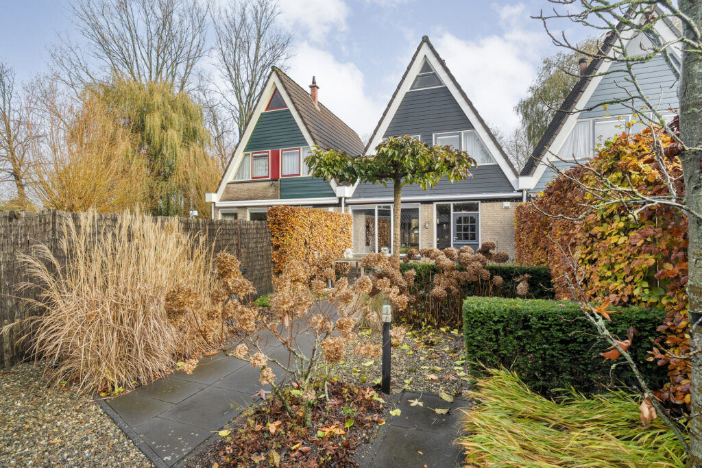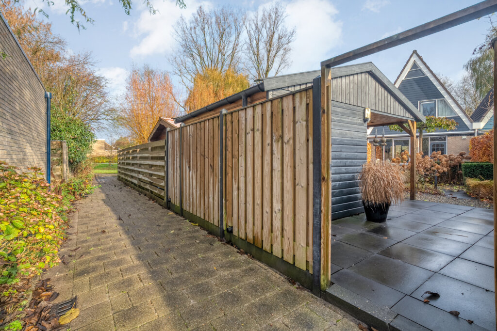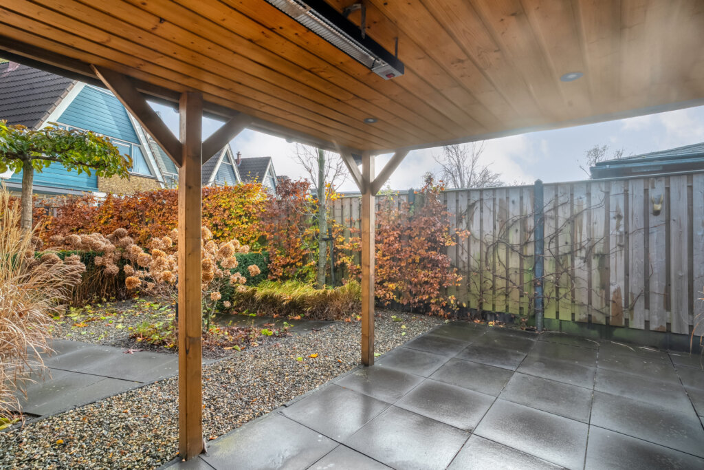 Via de achterdeur bereik je de sfeervol aangelegde tuin, compleet met sierbestrating, groenborders en een fijn tuinhuis met veranda en voldoende bergruimte. De achterom maakt de tuin extra praktisch.