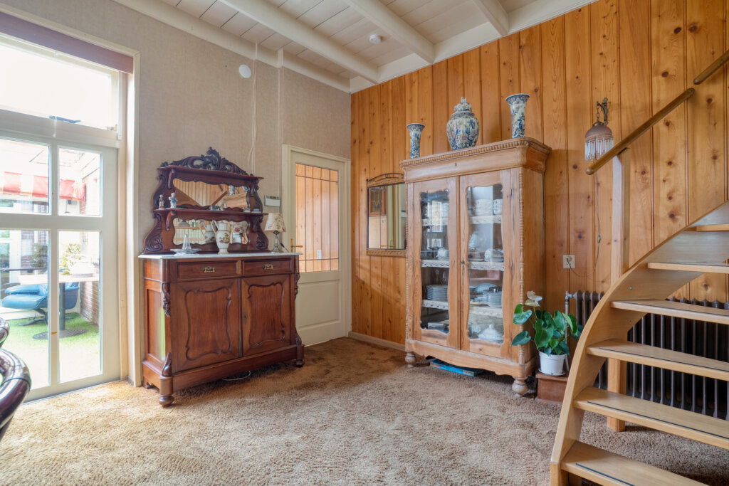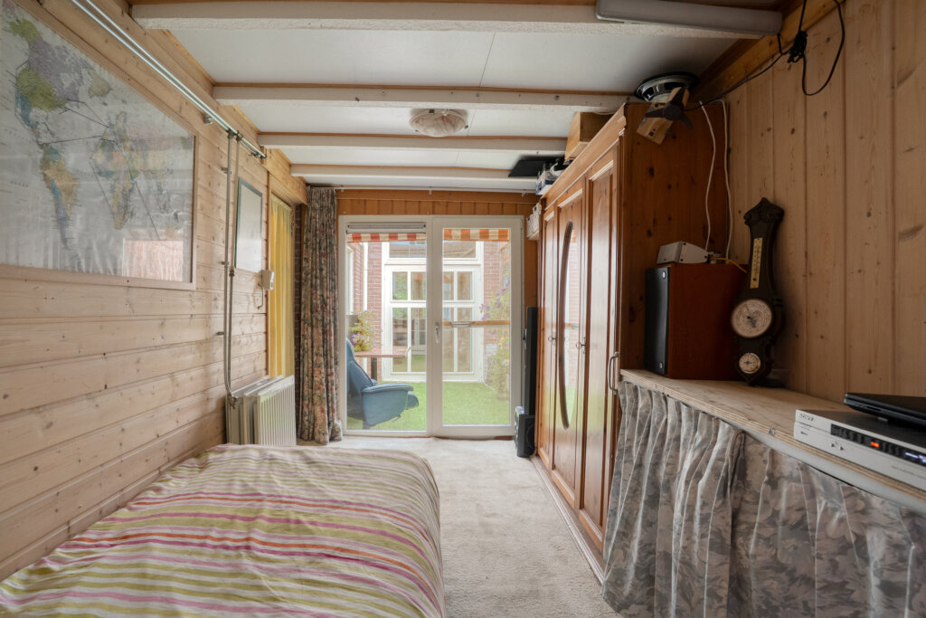 Daarnaast is er op de begane grond ook een slaapkamer gecreëerd met openslaande deuren naar de binnenplaats. Vanuit deze slaapkamer bereik je de berging waar ook de wasmachine staat. Vanuit hier heb je toegang tot de garage, die ook via een achterom aan de Groenestraat bereikbaar is.