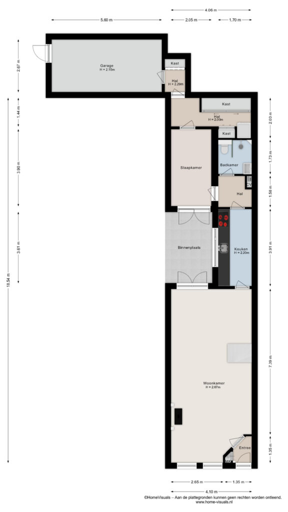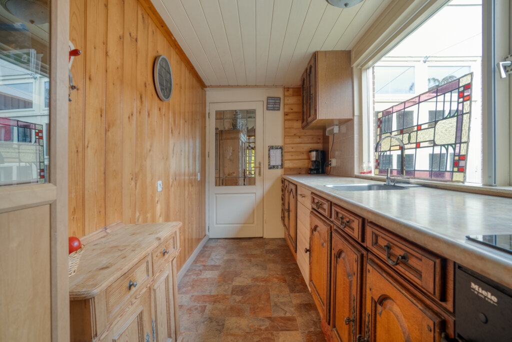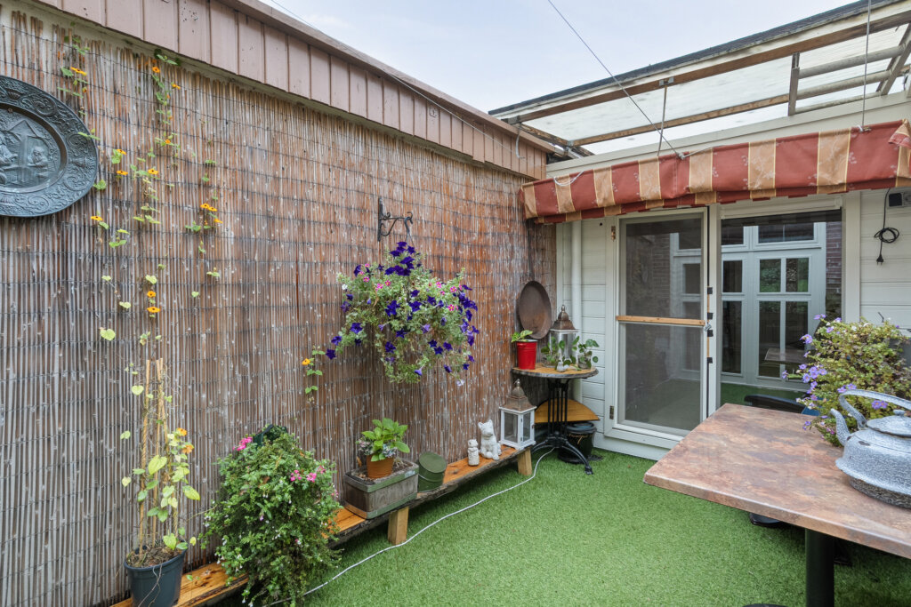 Vanuit de woonkamer heb je via openslaande deuren toegang tot de zonnige binnenplaats en de keuken. De keuken is praktisch ingericht en beschikt over een recht keukenblok met inbouwkookplaat, vaatwasser, oven en spoelbak. De aanwezige vloerverwarming zorgt voor extra comfort. Via de keuken kom je in een hal met de CV-opstelling en toegang tot de badkamer, die voorzien is van een douche, wastafel en toilet, en beschikt eveneens over vloerverwarming.