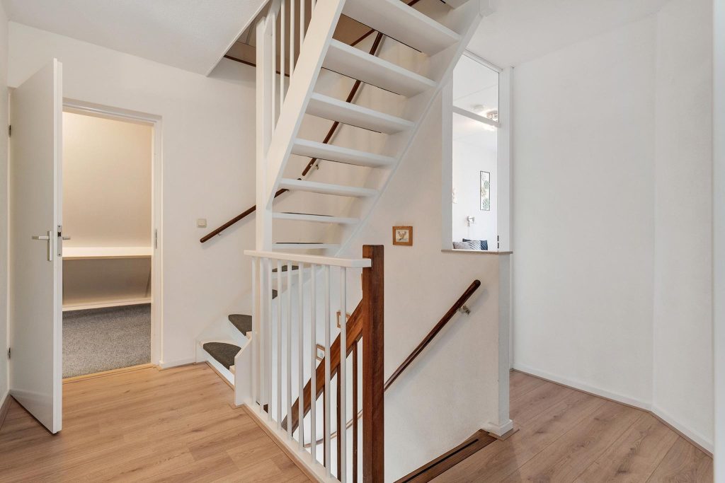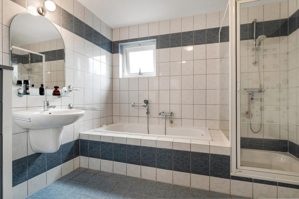 Op de eerste verdieping vind je vier ruime slaapkamers, ideaal voor een groter gezin of voor het inrichten van een werk- of hobbyruimte. De kamers zijn licht en bieden volop mogelijkheden om ze naar jouw wensen in te richten. Ook bevindt zich op deze verdieping de badkamer. De badkamer is praktisch uitgerust met een ligbad, een aparte douche en een wastafel, zodat je alles hebt voor je dagelijkse routine. Deze verdieping biedt precies wat je nodig hebt voor comfort.