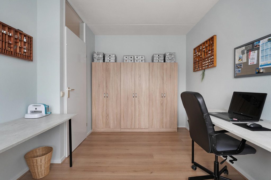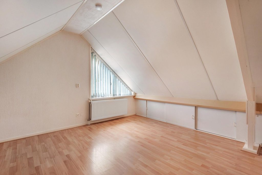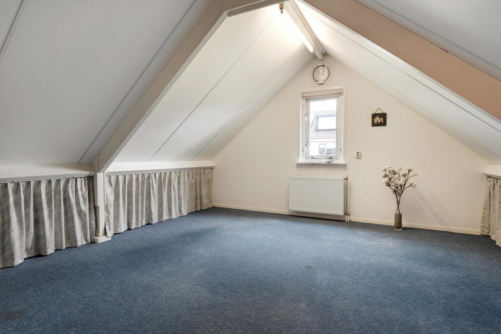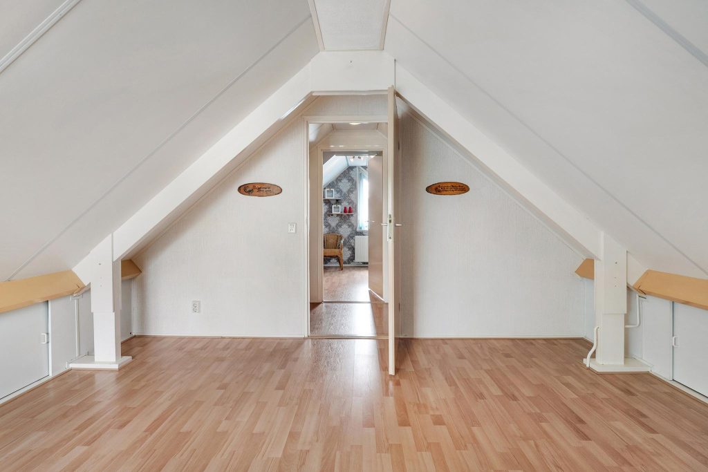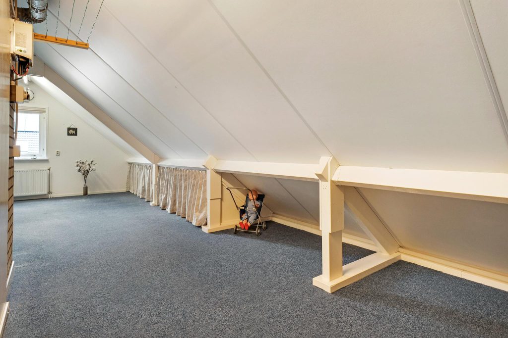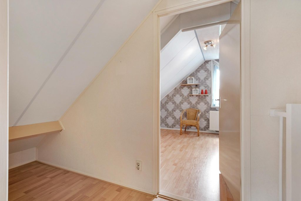 Op de tweede verdieping vind je twee extra slaapkamers die perfect zijn voor slaapruimte, een kantoor, of een hobbyruimte. Deze verdieping biedt de extra ruimte en flexibiliteit die je nodig hebt, met aan de zijkanten knieschotten waar je perfect je niet-dagelijkse spullen kunt opbergen.