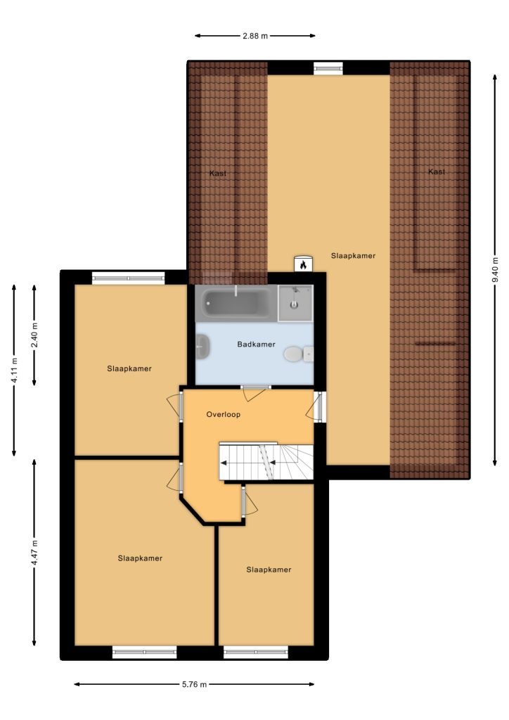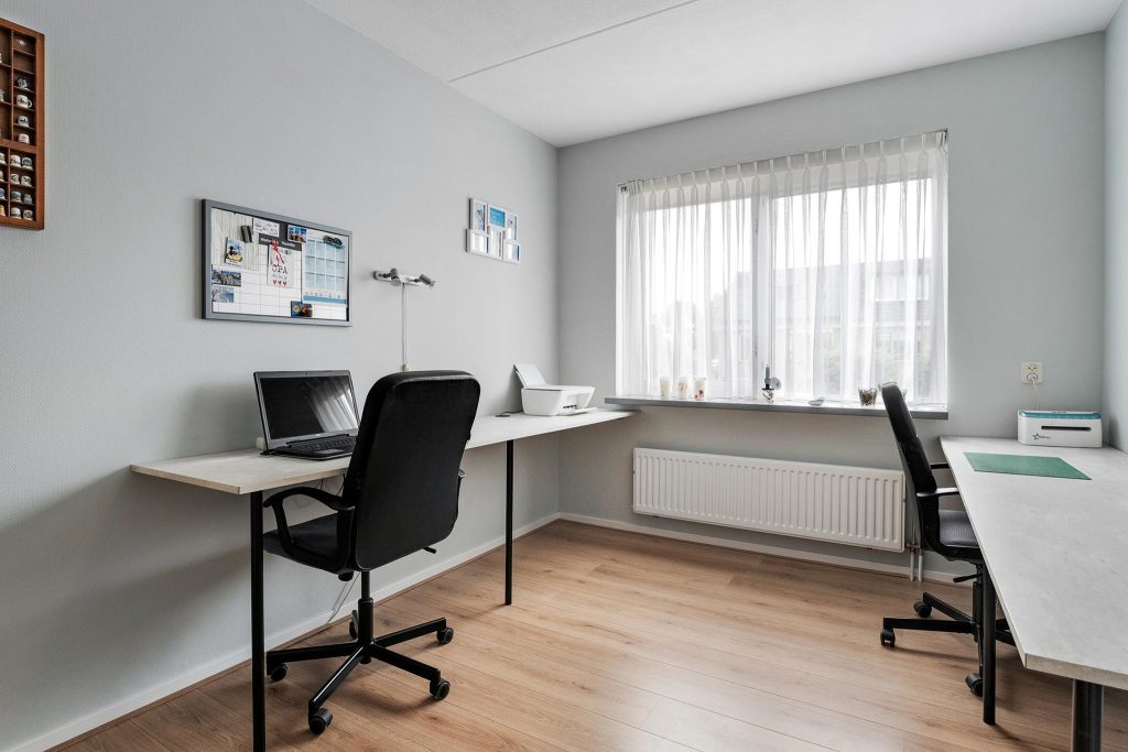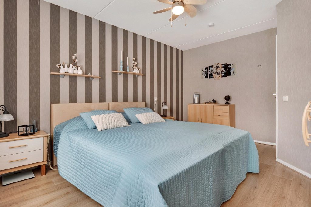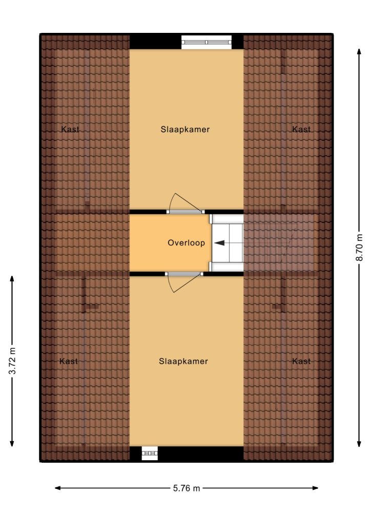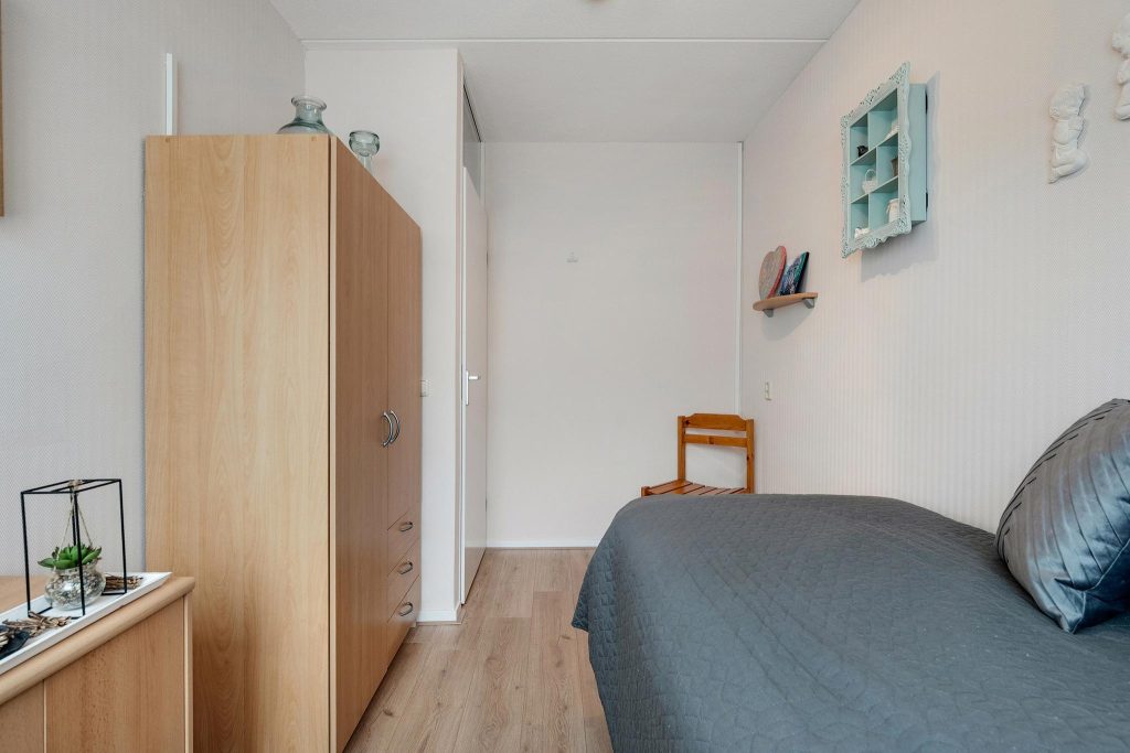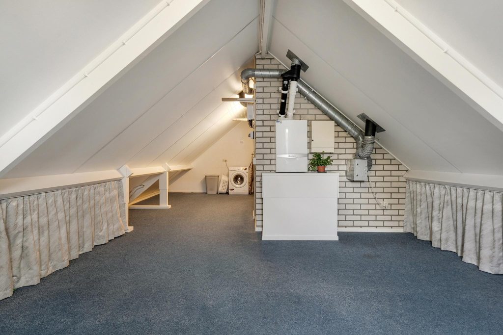 Op de tweede verdieping vind je twee extra slaapkamers die perfect zijn voor slaapruimte, een kantoor, of een hobbyruimte. Deze verdieping biedt de extra ruimte en flexibiliteit die je nodig hebt, met aan de zijkanten knieschotten waar je perfect je niet-dagelijkse spullen kunt opbergen.