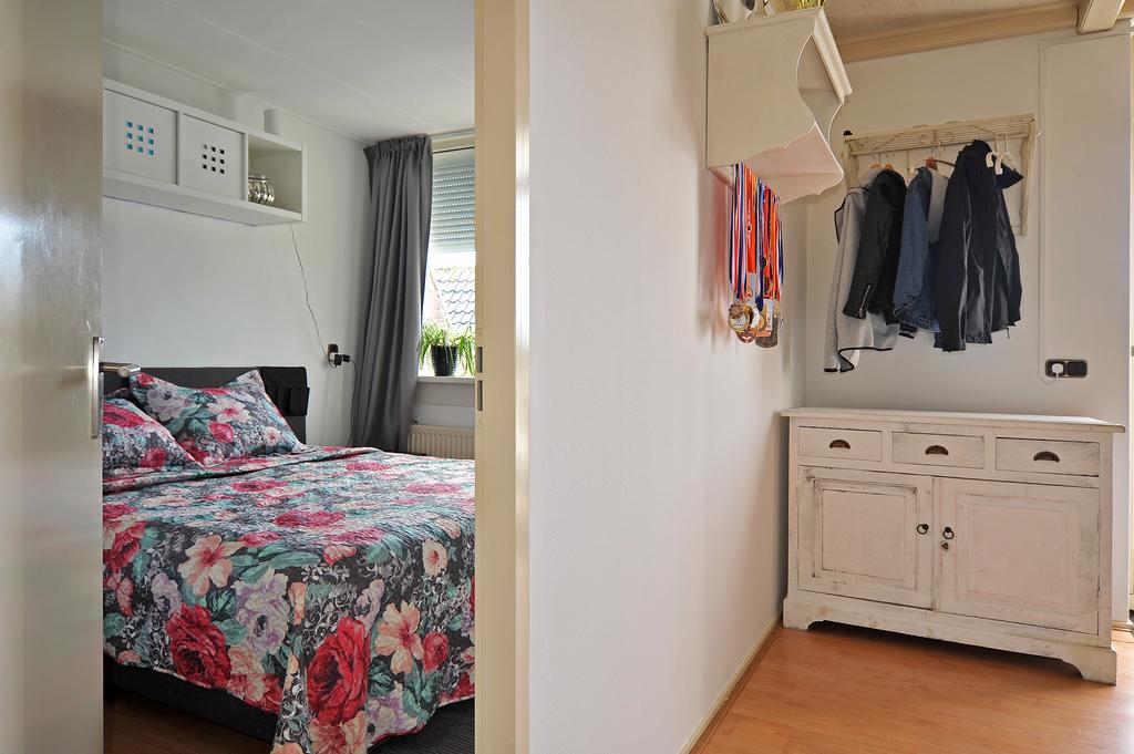 Indeling: via de hal heb je toegang tot de meterkast, een zeer ruime bergkast, een ruime ouder slaapkamer en een kleinere kinderkamer. Via de hal loop je door naar de woonkamer. De straat gerichte woonkamer loopt over in de half open keuken. De woonkamer is ruim en leent zich voor verschillende indelingen. De woonkamer is voorzien van gezellige open haard met schouw.