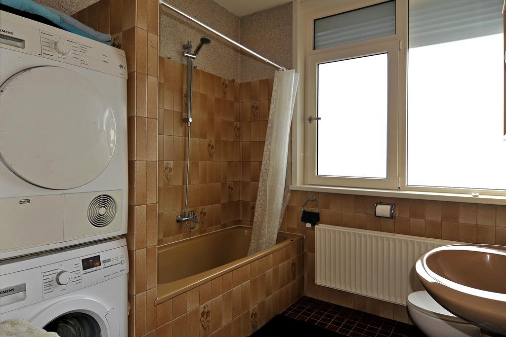 Dan heb je vanuit de woonkamer toegang tot een halletje. Vanuit daar bereik je het toilet, de wasruimte cq ketelhok en de ruime badkamer.