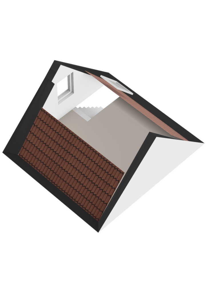 Via een vaste trap bereik je de zolderverdieping. Hier is een tweede slaapkamer gecreëerd, met een charmante uitstraling dankzij de zichtbare houten balken. Twee ramen zorgen voor een prettige lichtinval.