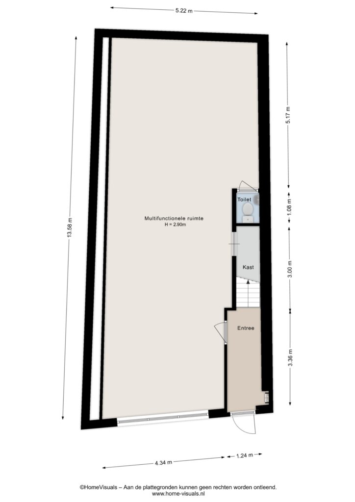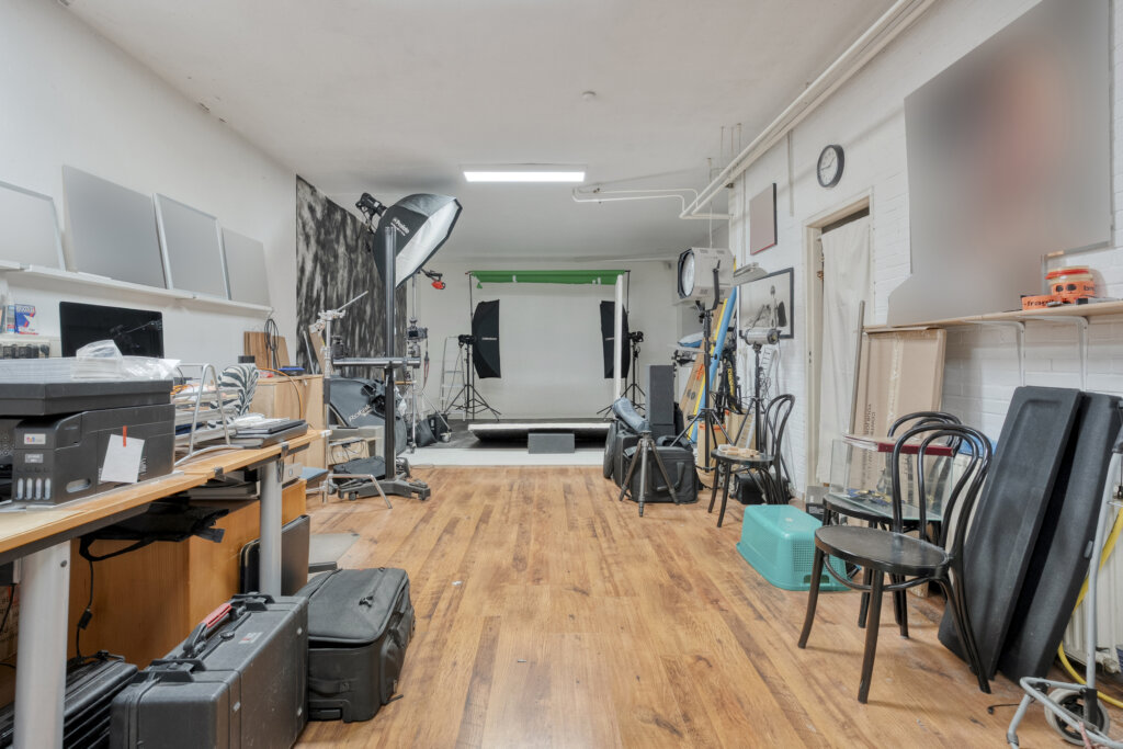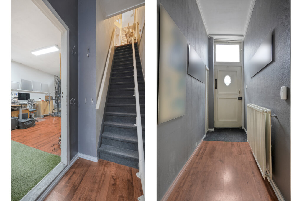 Via de entree heb je toegang tot de multifunctionele ruimte, de trapopgang naar de eerste verdieping en de meterkast. De multifunctionele ruimte is op dit moment in gebruik als fotostudio. Deze ruimte is voor meerdere doeleinden te gebruiken, omdat er zowel een woon- als een bedrijfsfunctie op rust. Van origine is de begane grond in gebruik geweest als garage. Je kunt hier met gemak 3 auto’s kwijt. Ook is er een toilet en extra bergruimte aanwezig.