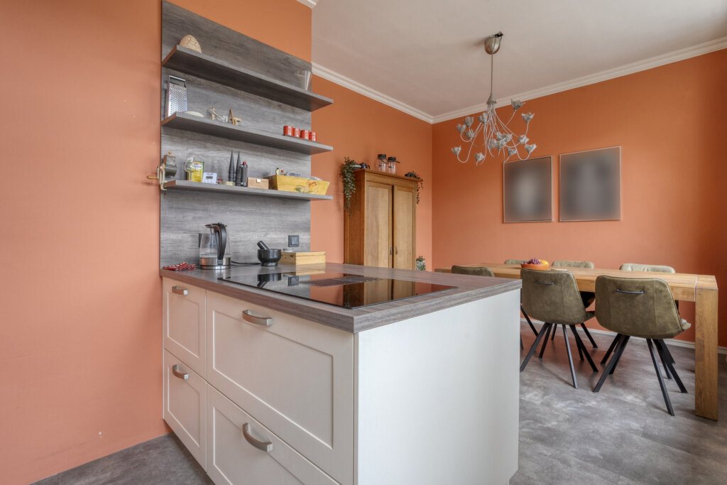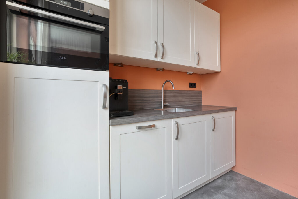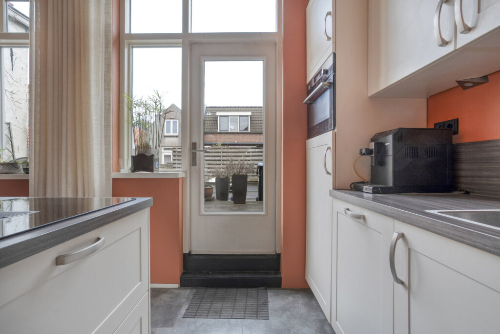 De aparte leefkeuken aan de achterzijde van de woning geeft toegang tot het dakterras, gericht op het noordoosten. De leefkeuken (vernieuwd in 2020) is voorzien van een inductiekookplaat met integraal afzuigsysteem, vaatwasser, koelkast en combi oven-magnetron. De leefkeuken is een heerlijke plek om samen te komen.