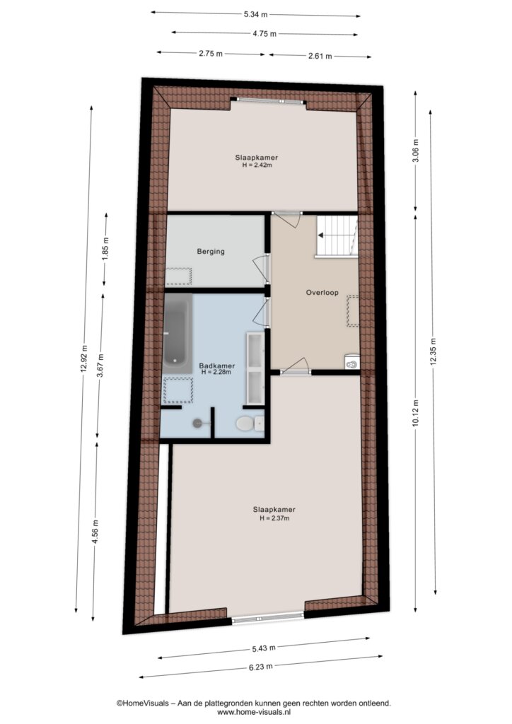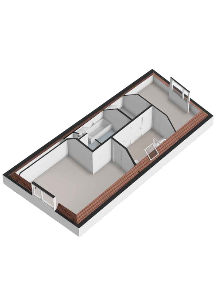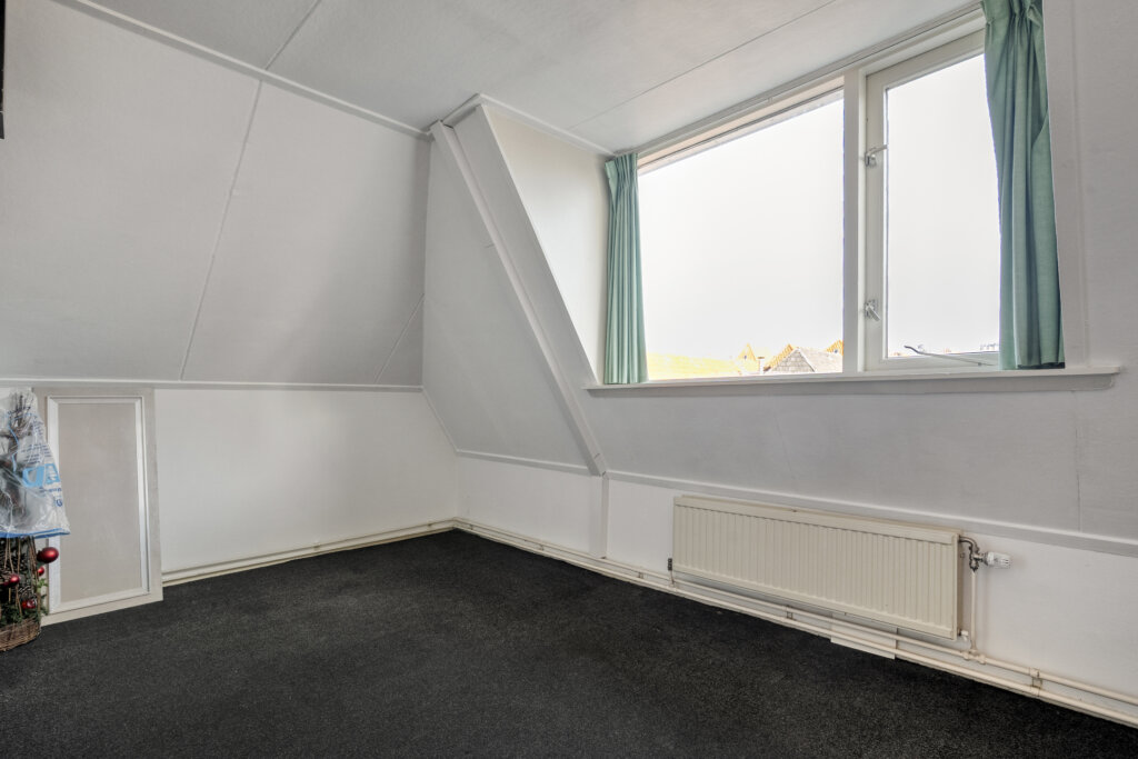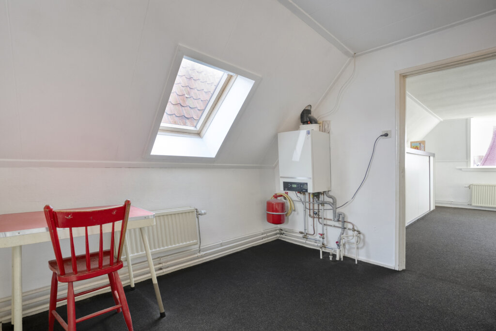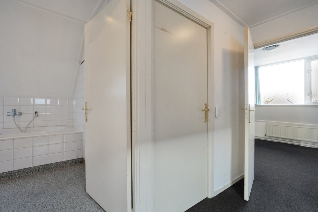 Vanuit de overloop, voorzien van een dakraam en toegang tot de cv-ketel, heb je toegang tot de drie slaapkamers, de badkamer en de vliering. De grote slaapkamer bevindt zich aan de voorzijde van de woning en is voorzien van airconditioning. De badkamer is uitgerust met een ligbad, douche, toilet en dubbele wastafel. De andere twee slaapkamers bevinden zich aan de zij- en achterzijde van de woning. Daarnaast is er een vliering over de gehele lengte van de woning.