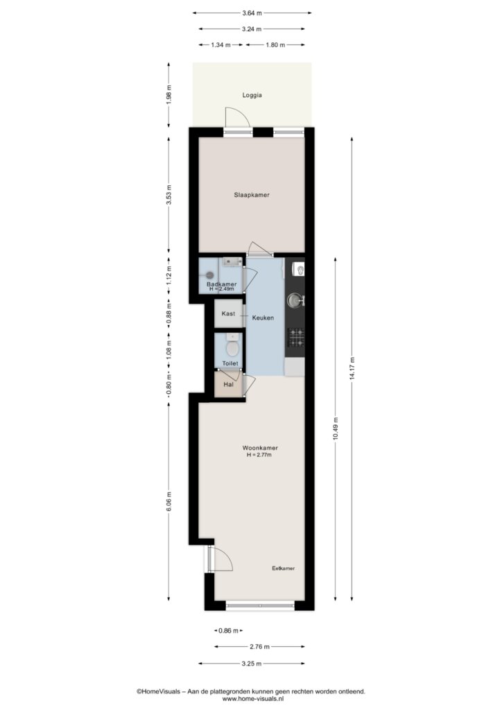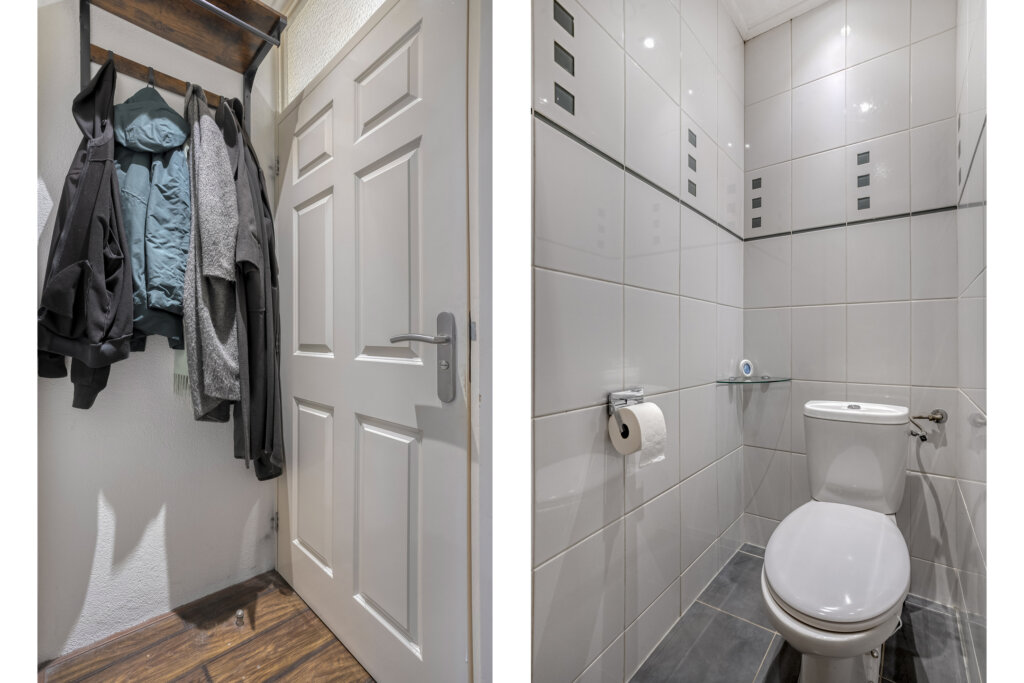Via een halletje heb je toegang tot het toilet. Dit halletje is tevens te gebruiken als garderobe.