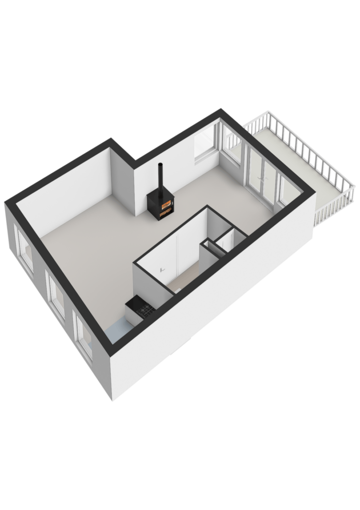Aan de linkervoorzijde van de woning heb je toegang tot een inpandige bergruimte. Voldoende ruimte om je fiets en andere spullen in op te bergen.