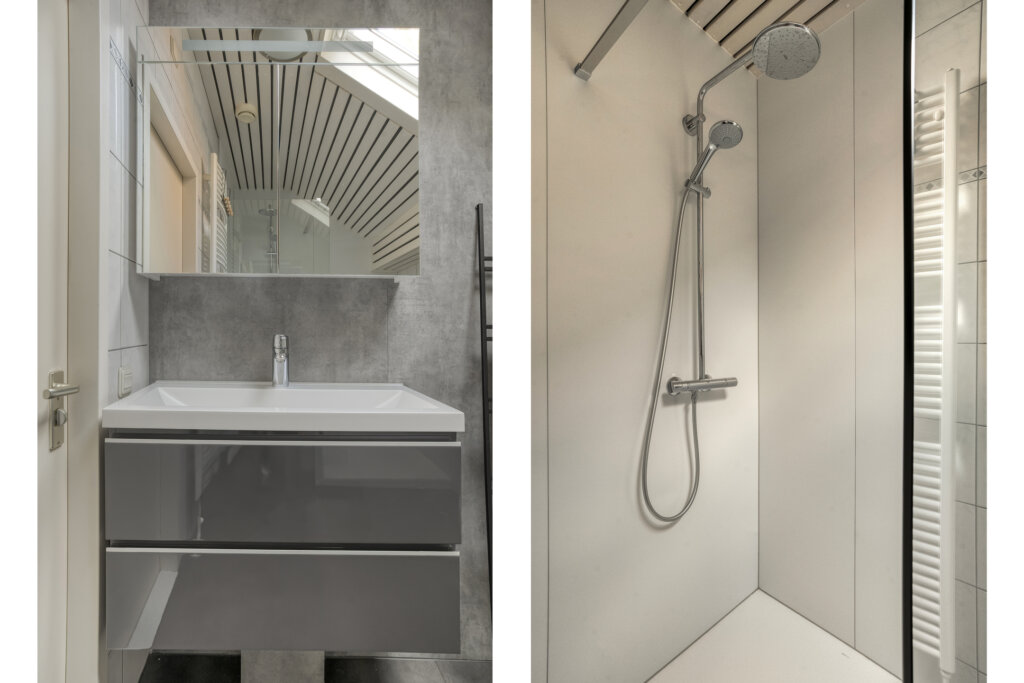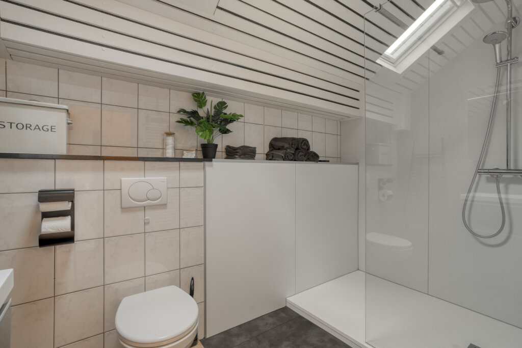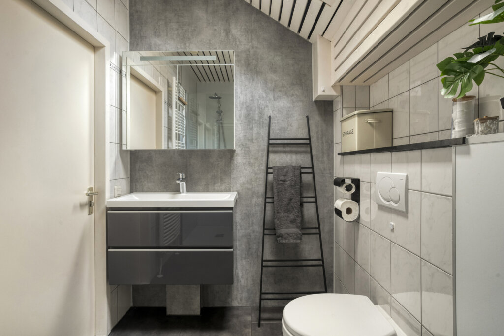 Op de eerste verdieping zijn vier slaapkamers aanwezig. Twee aan de voorzijde, één aan de zijkant en een ruime slaapkamer aan de achterzijde met een walk-in closet en airconditioning. De badkamer (gerenoveerd in 2023) ligt centraal en is praktisch ingericht met een inloopdouche, tweede toilet en wasmeubel.