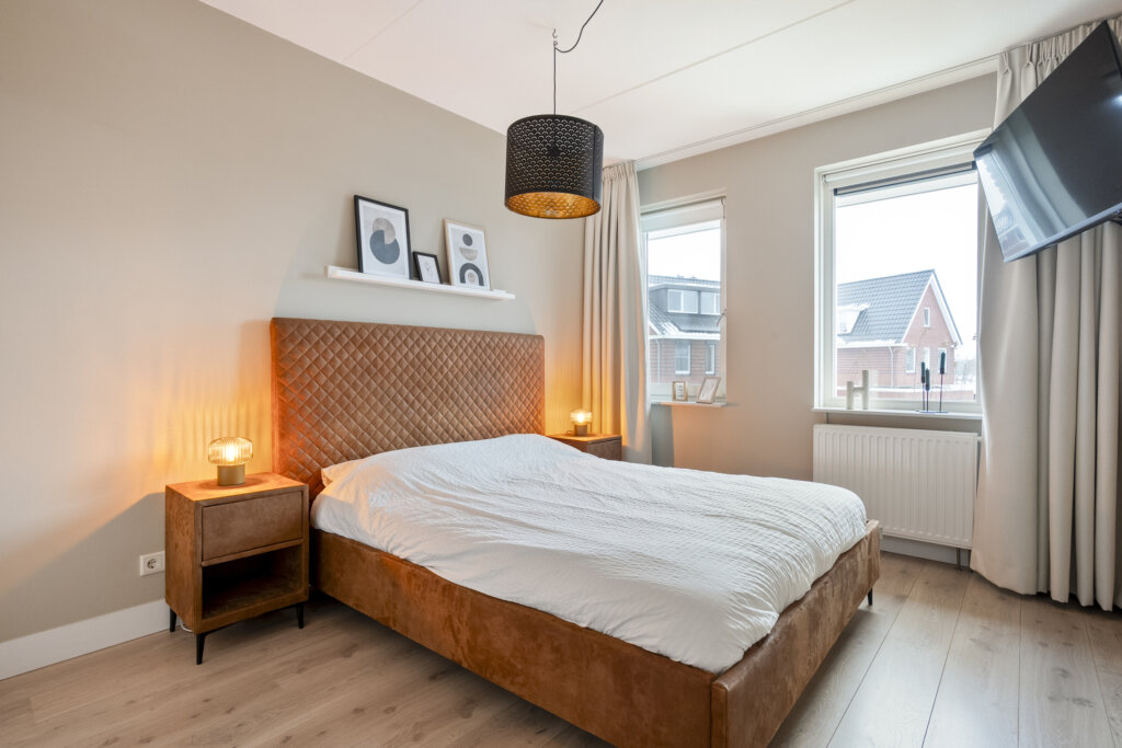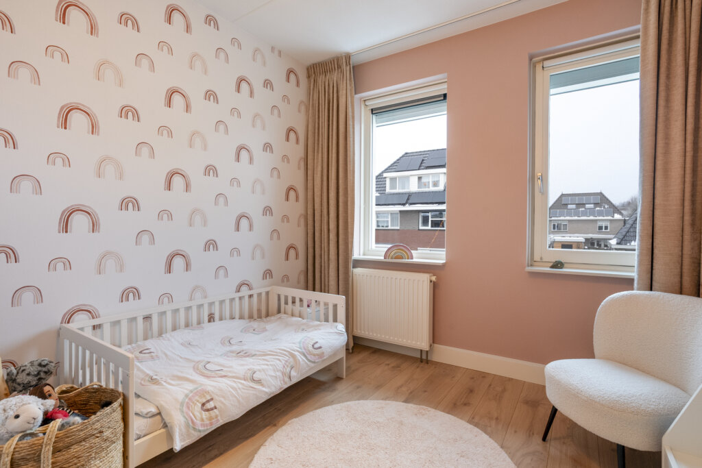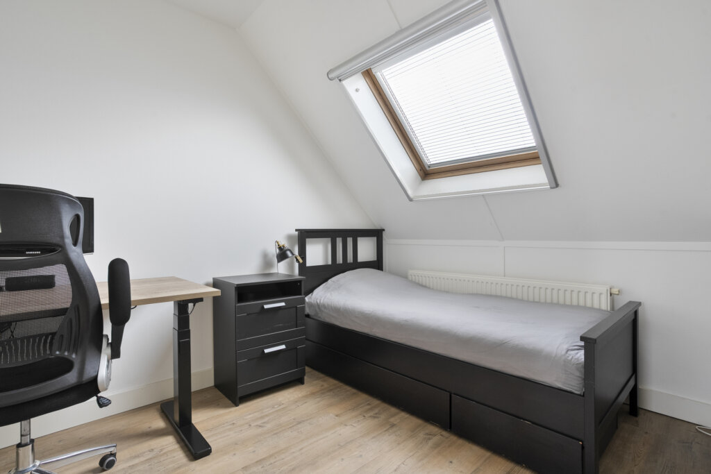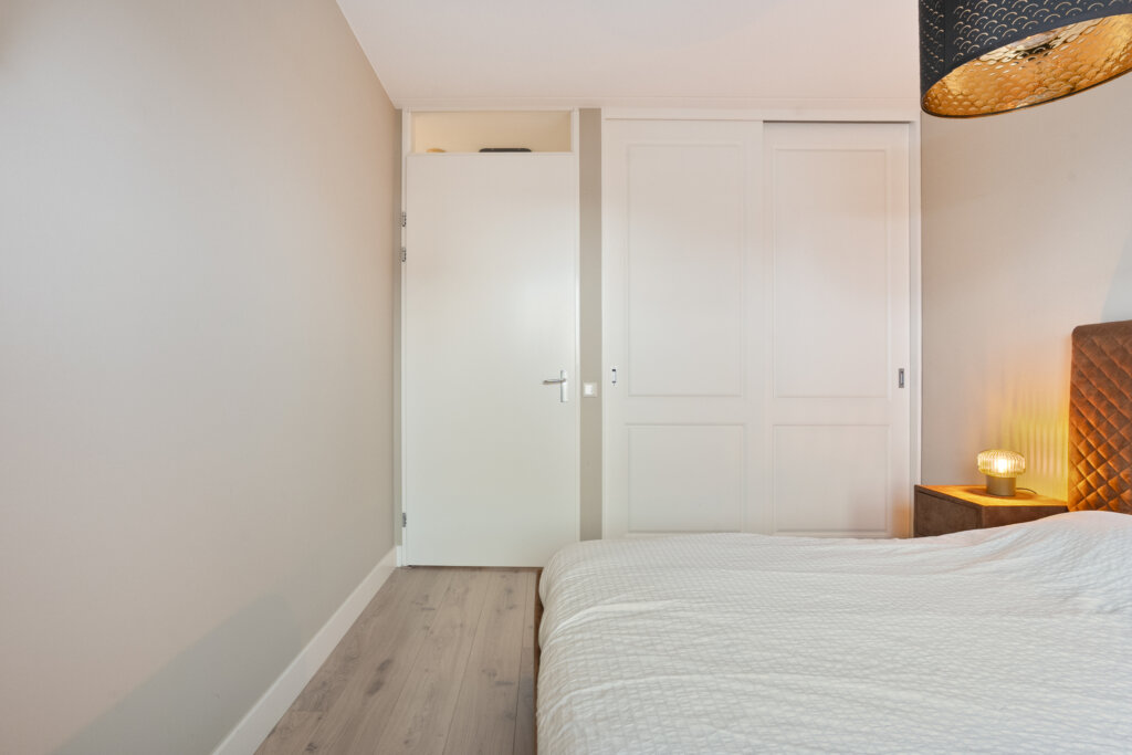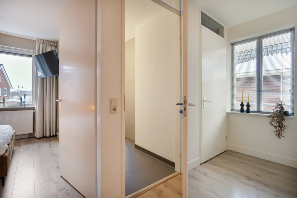 Op de eerste verdieping bevinden zich drie slaapkamers, waaronder een ruime ouderslaapkamer aan de achterzijde met vaste kastenwand. Op de overloop bevindt zich een extra ruime opbergkast welke ook goed als walk-in closet gebruikt kan worden. De slaapkamers aan de voorzijde zijn voorzien van rolluiken en één van deze kamers beschikt eveneens over een vaste kastenwand.