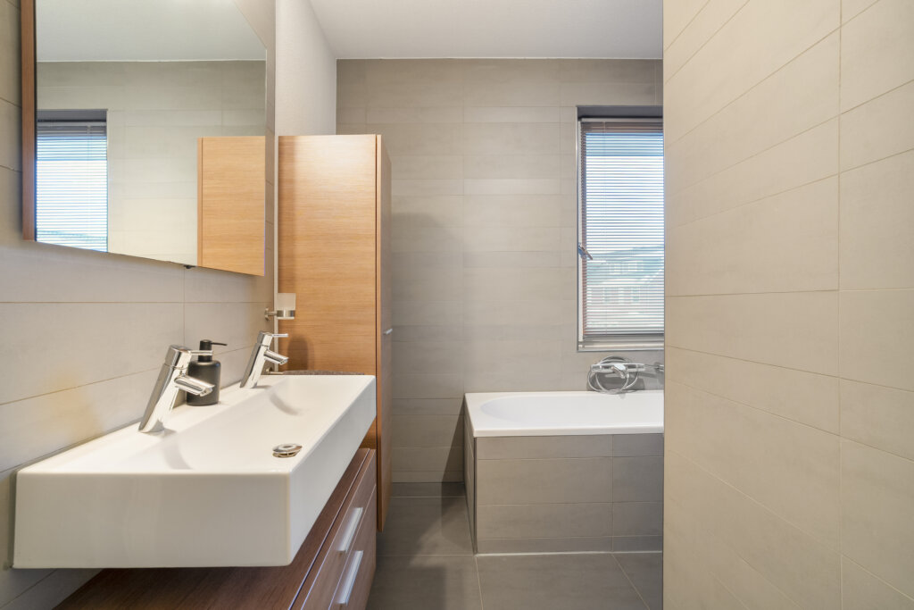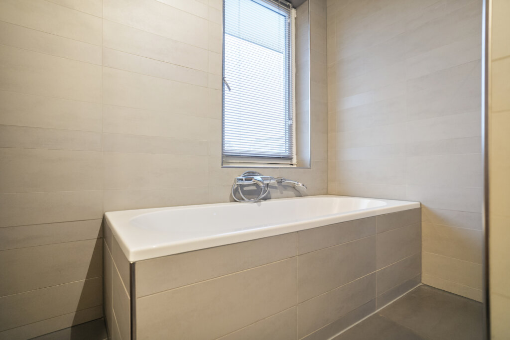 De badkamer is uitgerust met een ligbad, douche, wastafel met dubbele kraan en designradiator. Een tweede, separate toilet is toegankelijk vanaf de overloop.