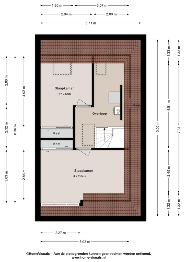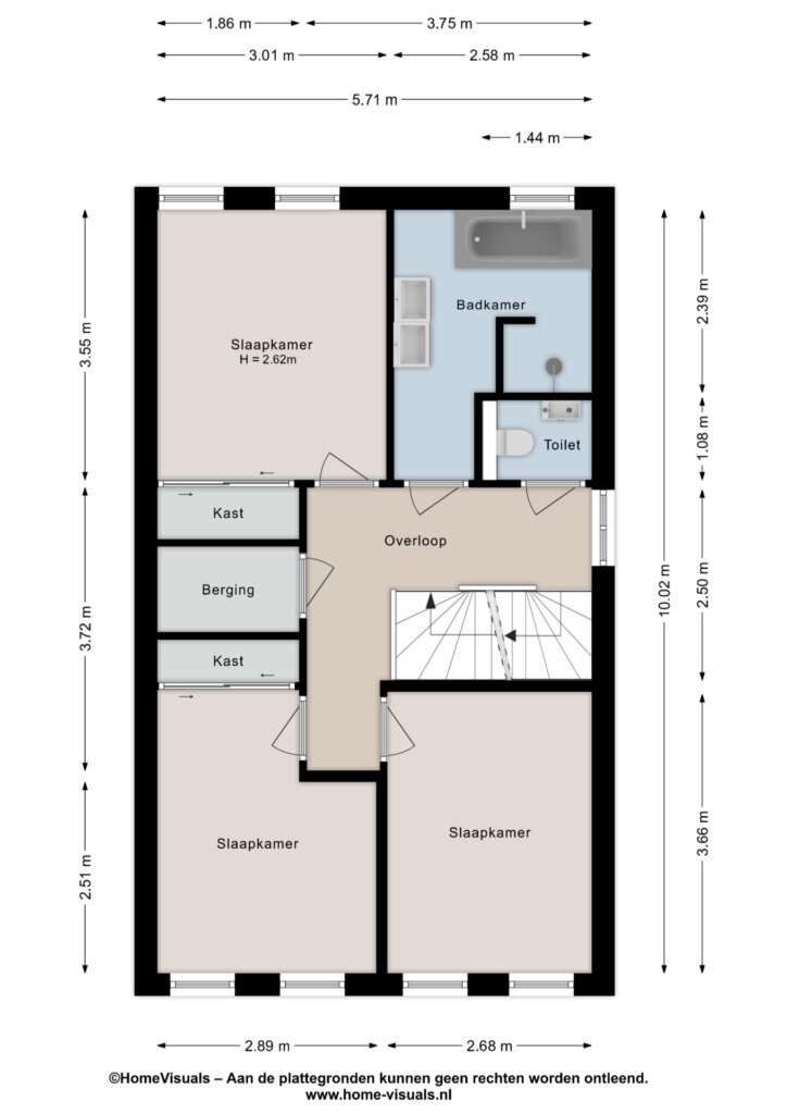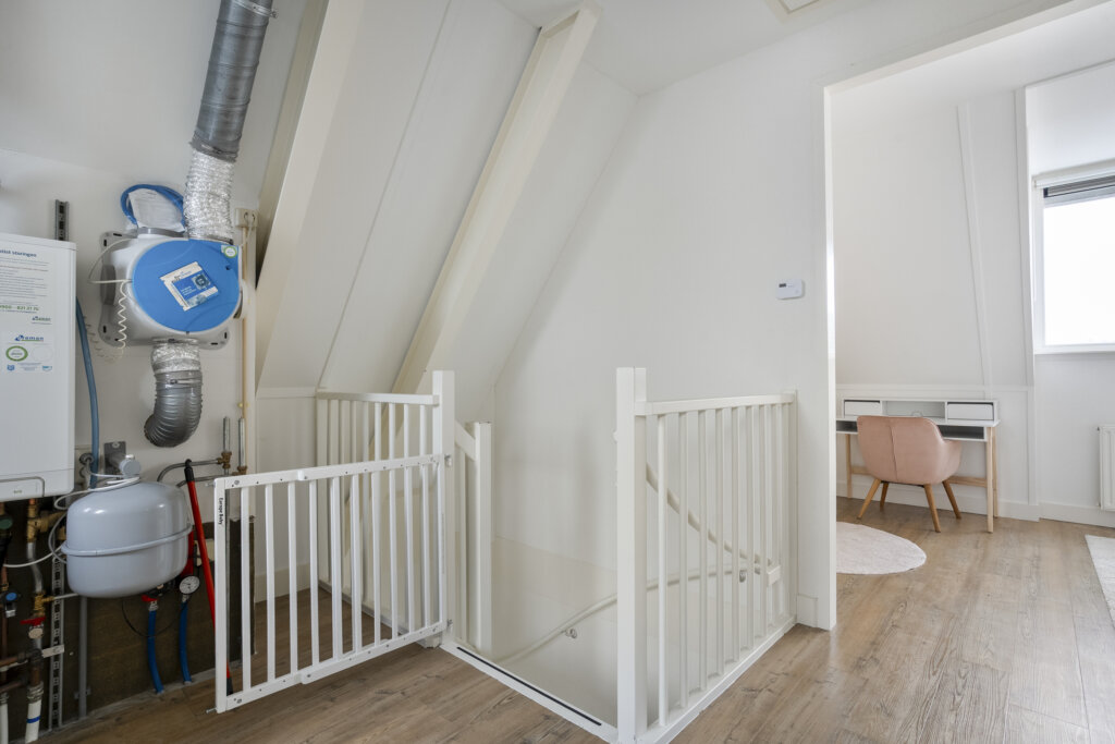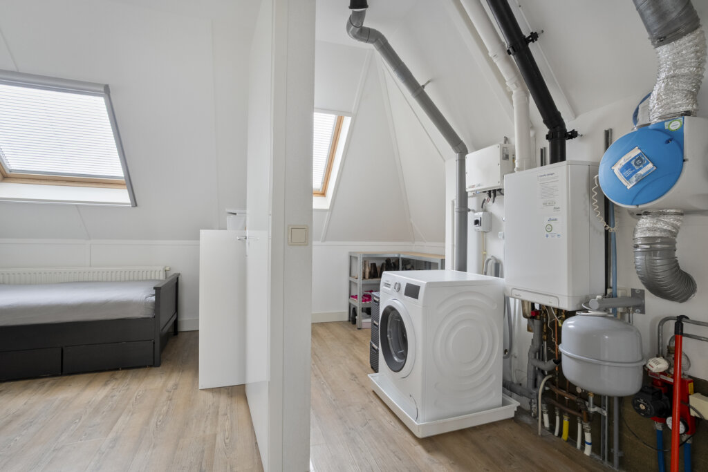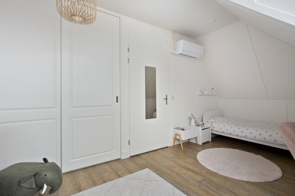 De tweede verdieping is bereikbaar via een vaste trap en hier bevinden zich nog eens twee slaapkamers met vaste kastenwand. Beide kamers zijn voorzien van airconditioning. Op de overloop bevind zich de aansluiting voor de wasmachine, evenals voldoende ruimte om je was te drogen. Via de overloop heb je ook toegang tot de ruime vliering middels een vlizotrap.