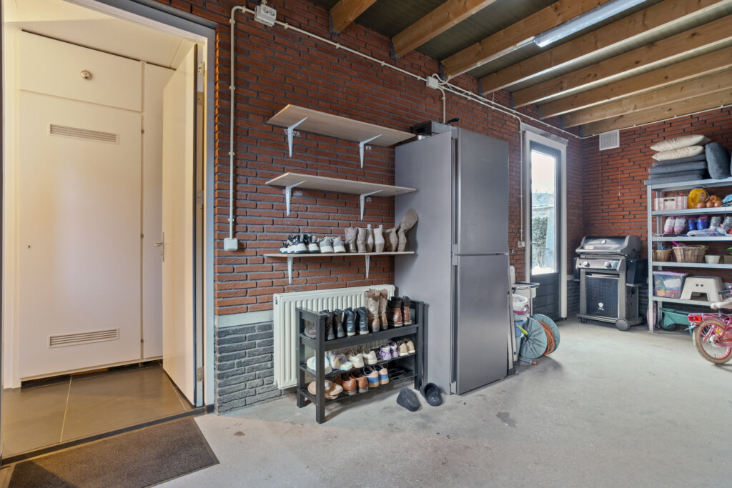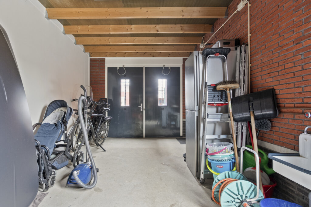 Vanuit de hal heb je toegang tot de garage. De garage is voorzien van elektra en koud en warm water. Vanuit de garage is er eveneens toegang tot de tuin.