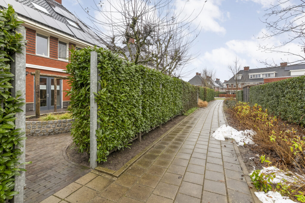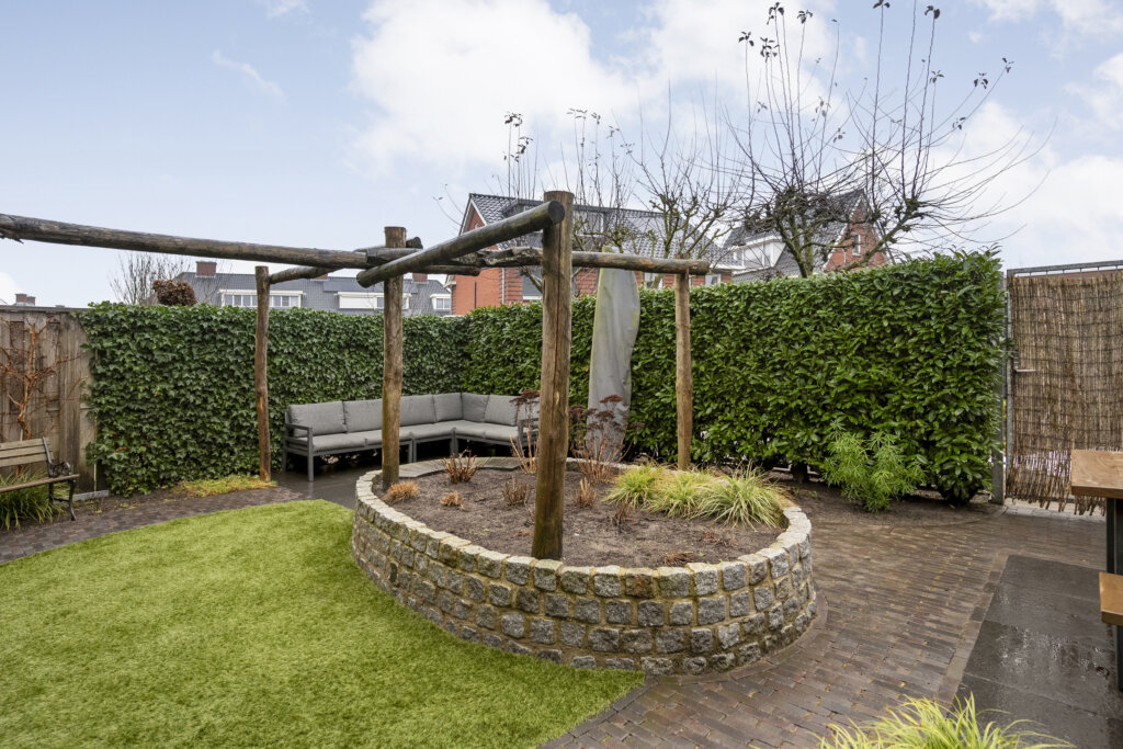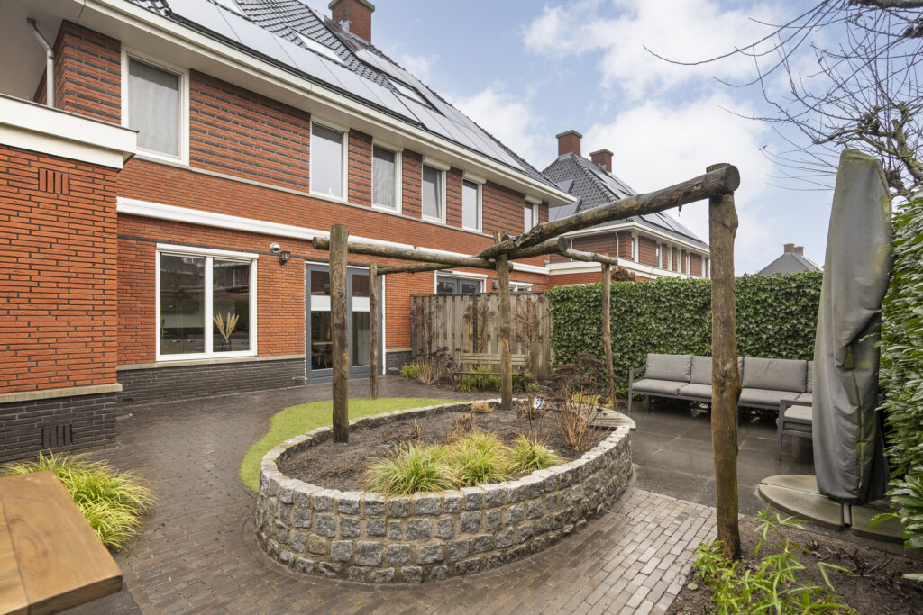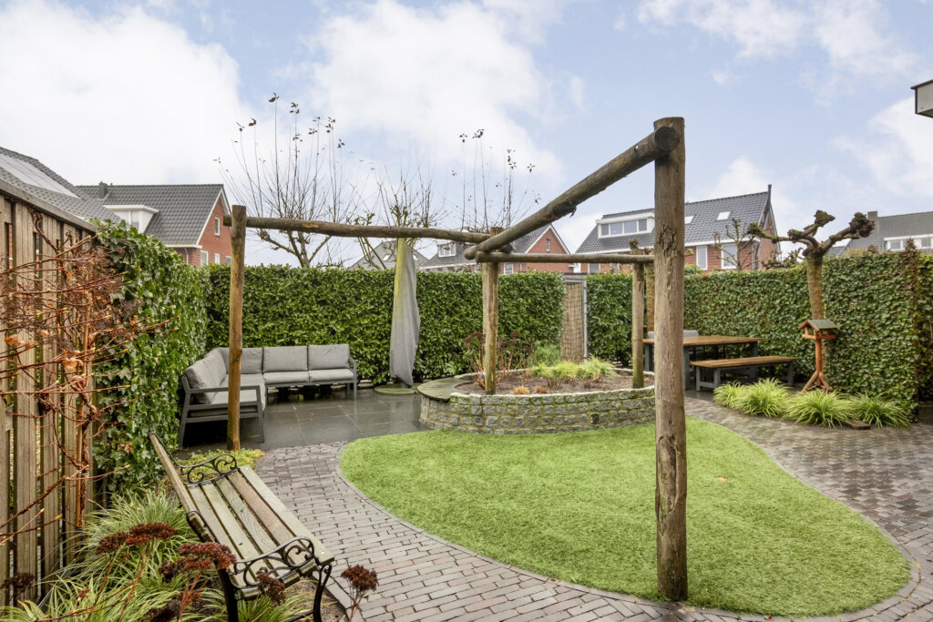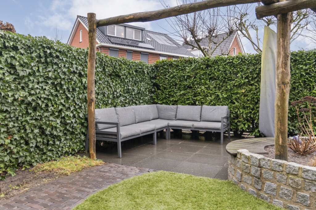 De achtertuin is gelegen op het zuidoosten en heeft meerdere zitgedeeltes en is voorzien van een achterom. Aan de voorzijde van de woning heb je je eigen oprit en er is aan de straat ook ruimte om een auto te parkeren.