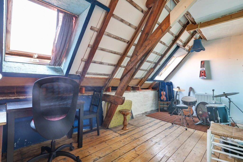 De zolder is bereikbaar via een semi vaste trap en biedt volop mogelijkheden voor opslag of het creëren van een extra slaapkamer.