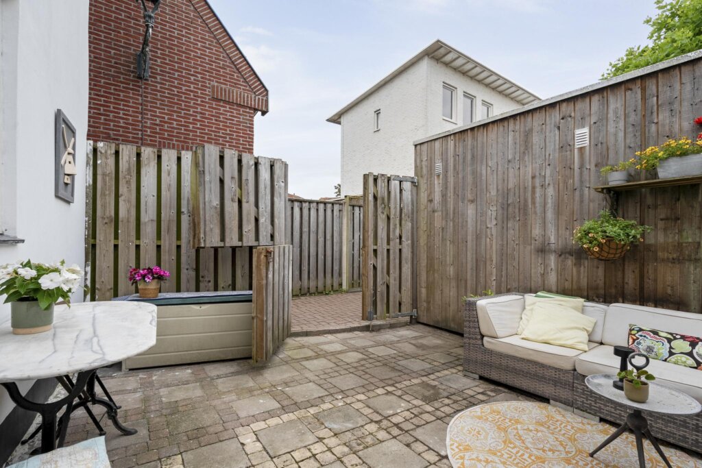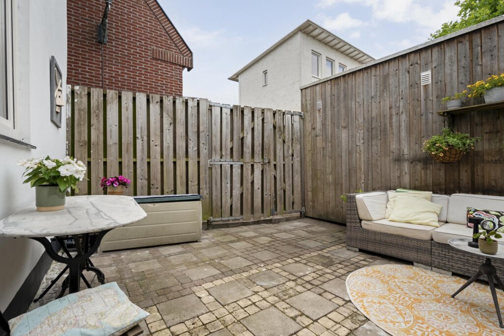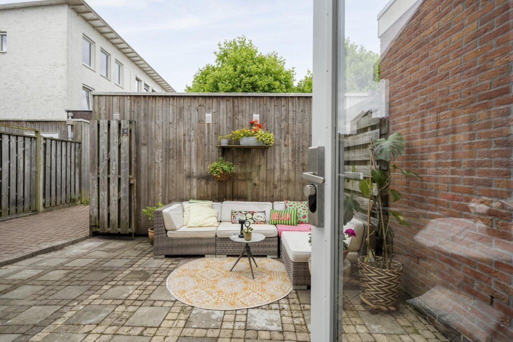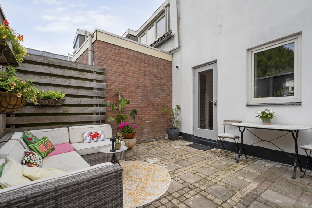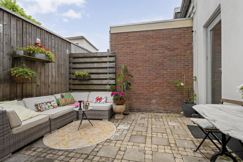 Via de achterdeur stap je zo de zonnige buitenruimte in, een knusse stadstuin waar je heerlijk privé kunt zitten en genieten van de buitenlucht.