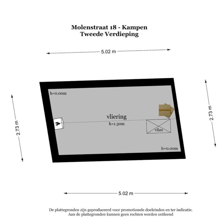 Op de tweede verdieping is nog een bergzolder aanwezig, bereikbaar via een losse trap.