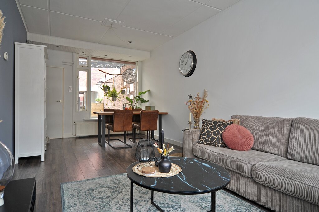 Via de gezellige straat bereik je de entree. In de hal bevindt zich de meterkast, de trapopgang naar boven en de toegang tot de woonkamer. De gezellige en straatgerichte woonkamer heeft een fijne lichtinval doordat het een doorzon-woonkamer is. Vanuit het eetgedeelte loop je door naar de moderne keuken. In de keuken bevindt zich een handige kelderkast. Vervolgens loop je vanuit de keuken door en vind je het separate toilet, een bijkeuken en de nieuwe badkamer. De compleet betegelde badkamer is voorzien van een wastafel met wastafelmeubel en een douche.