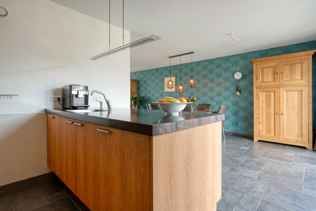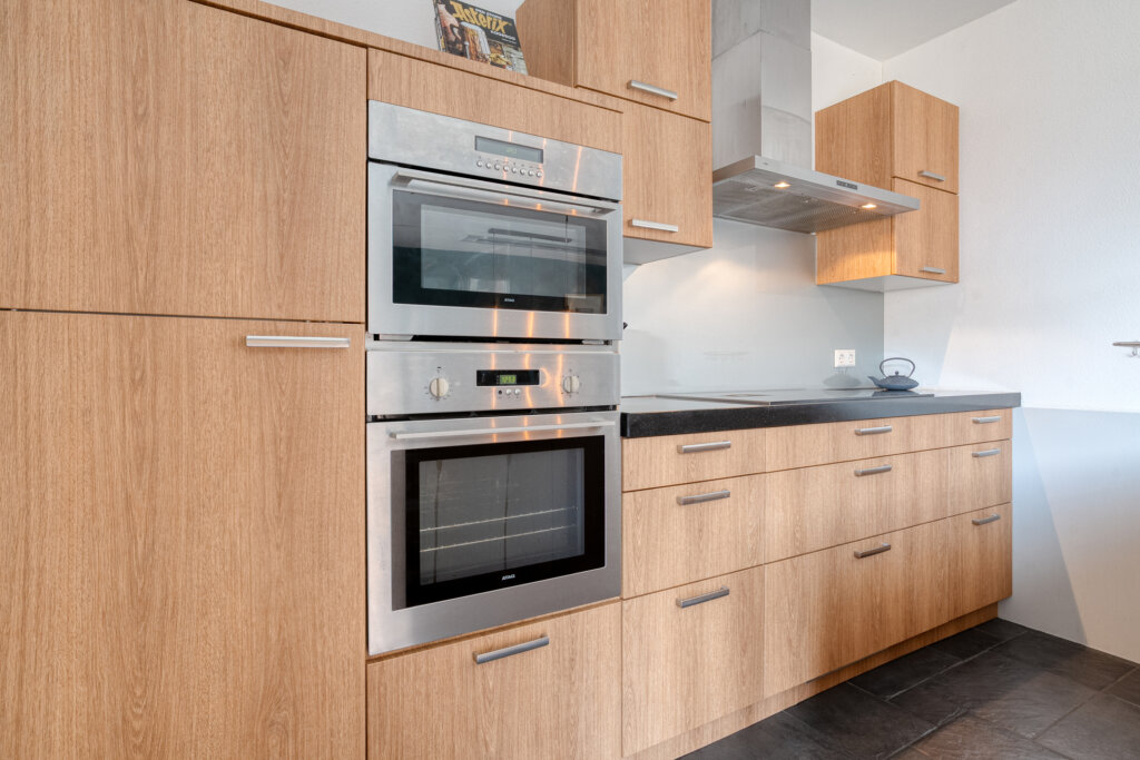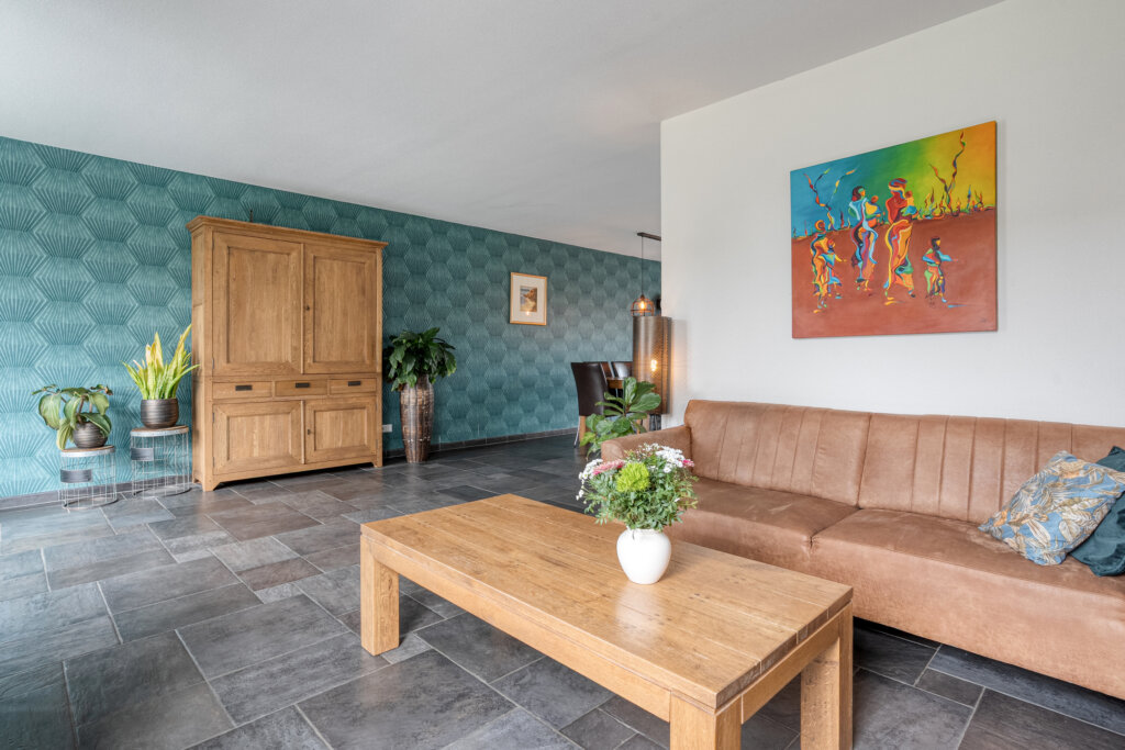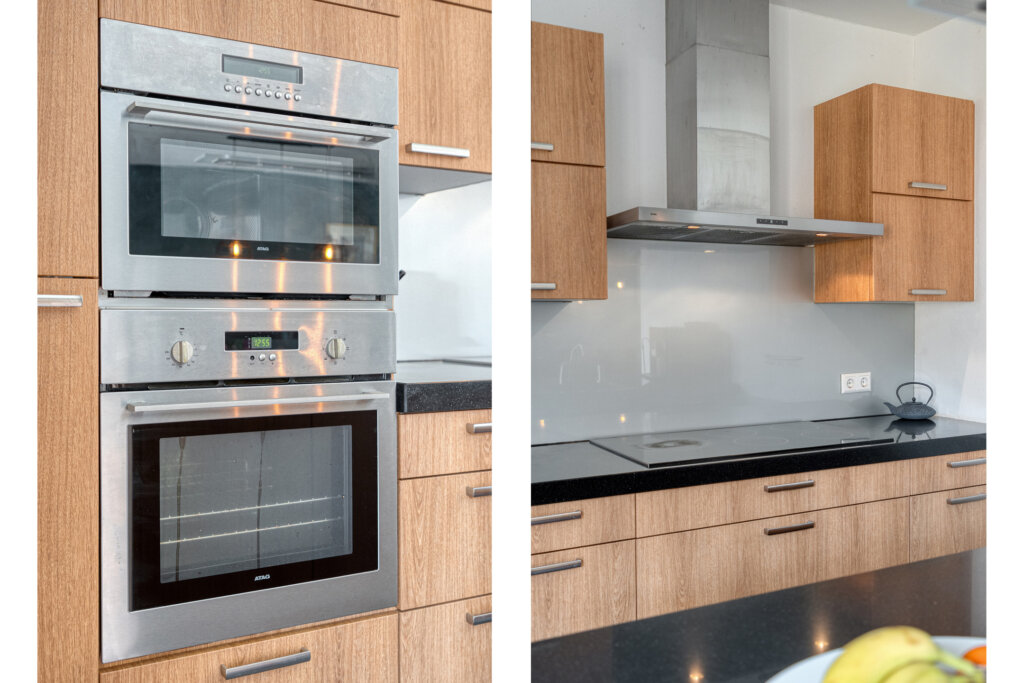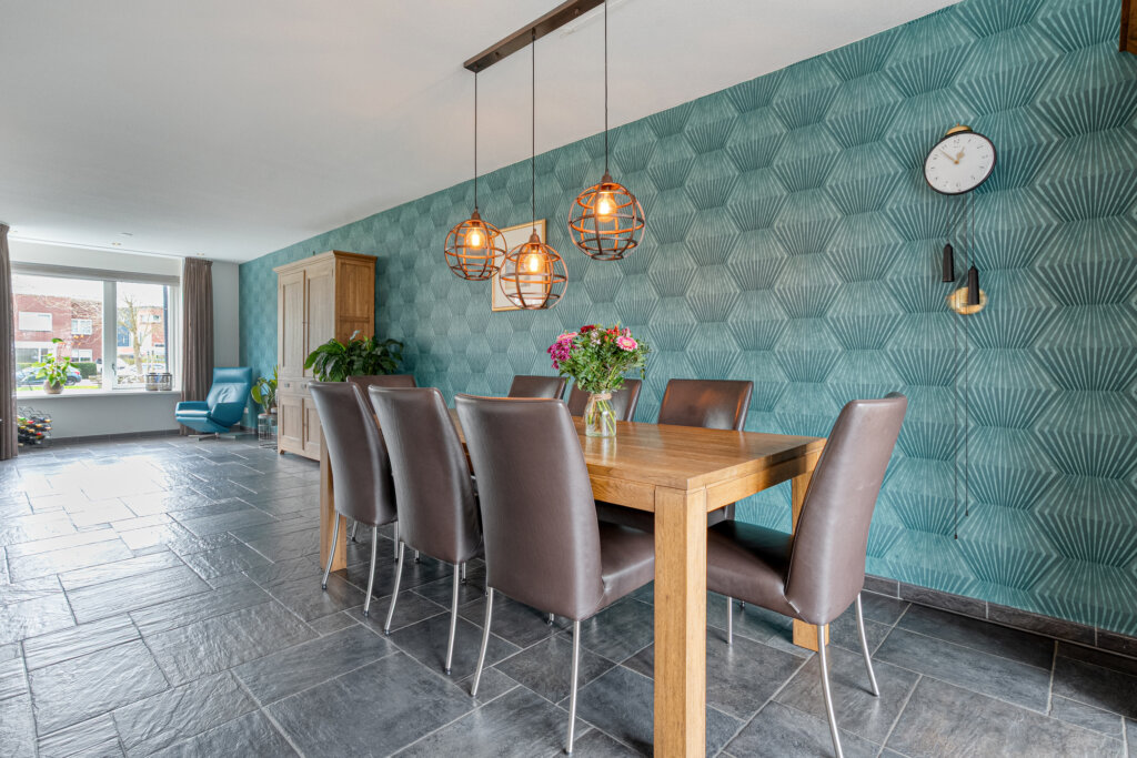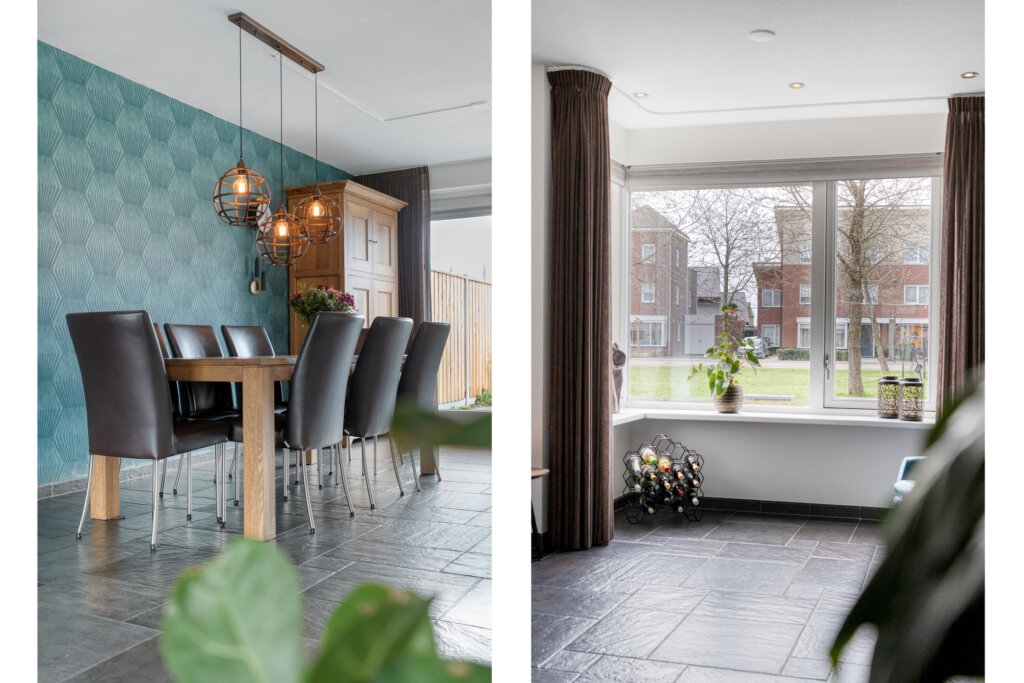 Via de entree kom je binnen in de ruime hal. Hier bevinden zich het toilet, de meterkast, de garderobe, de trapopgang en de toegang tot de leefruimte. De U-vormige leefruimte biedt aan de voorzijde een heerlijk zitgedeelte, voorzien van airconditioning, waarbij er voldoende ruimte is om een hoekbank en fauteuils neer te zetten. Het zitgedeelte loopt mooi over naar achteren, naar het eetgedeelte en de leefkeuken. Via de schuifdeuren aan de achterzijde is er directe toegang tot de tuin. De leefkeuken met schiereiland is voorzien van een inductiekookplaat (2018), vaatwasser (2022), koelkast, oven en magnetron.