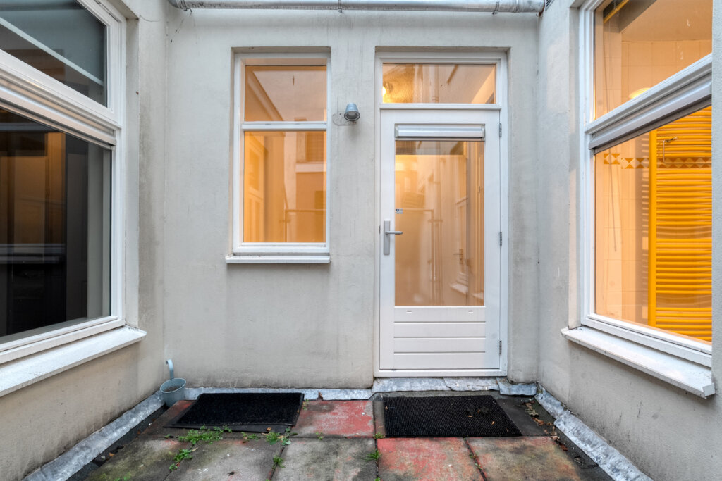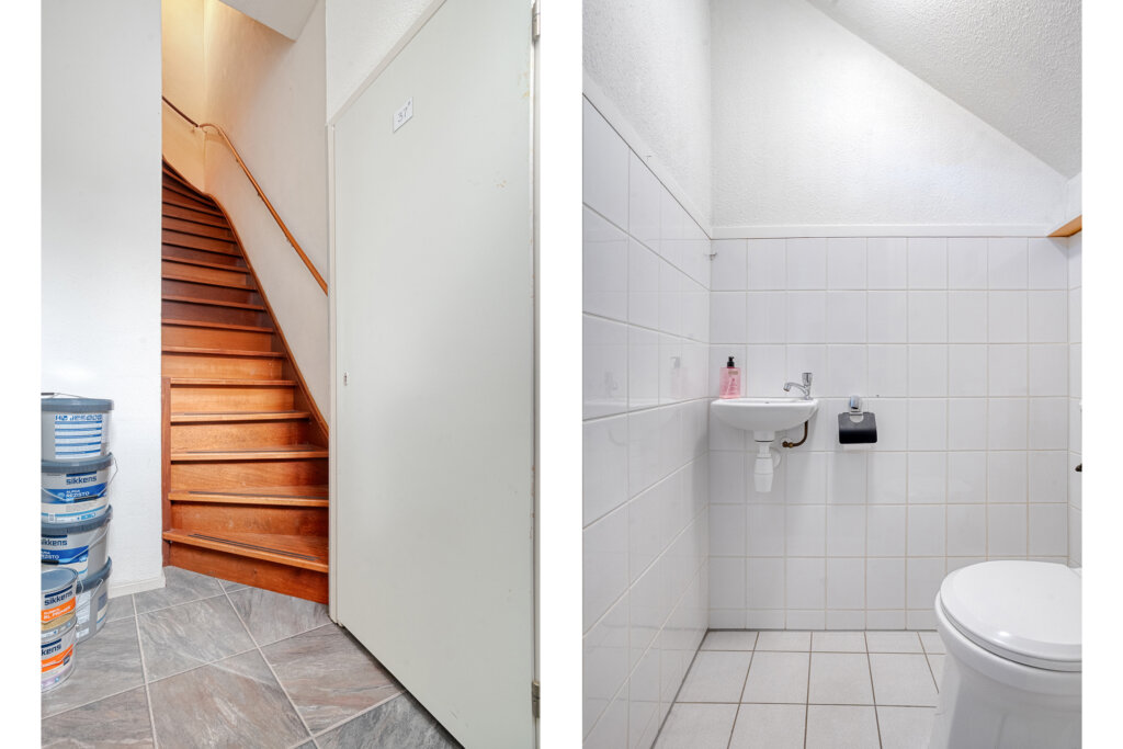De entree wordt gedeeld met de bovenburen. Via de gezamenlijke trap bereik je het appartement op de eerste verdieping.