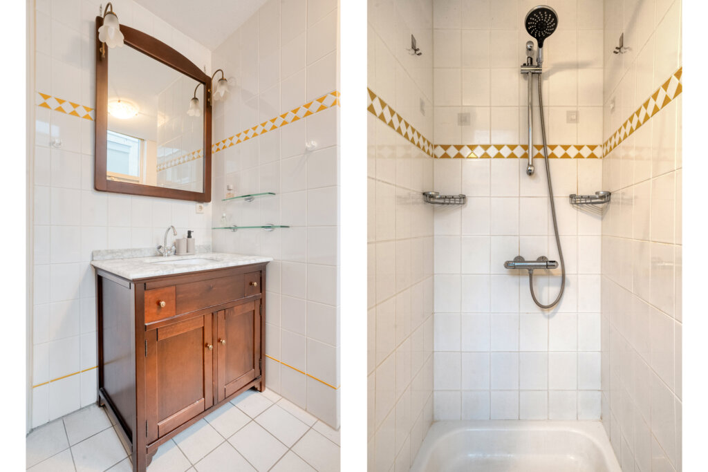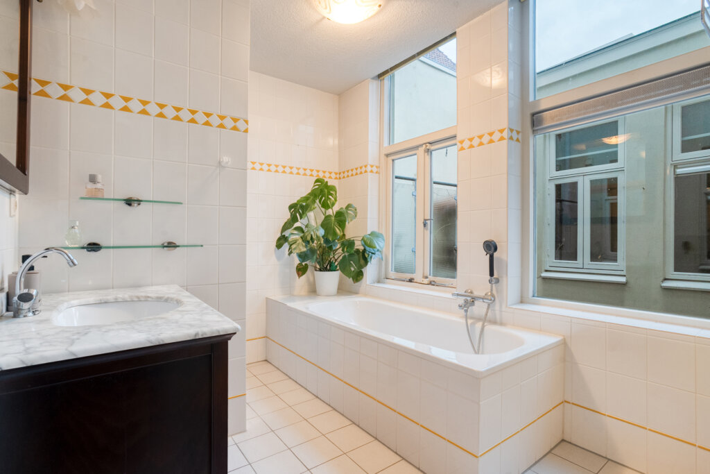 Vanuit de hal heb je toegang tot een ruime badkamer, voorzien van een douchehoek, ligbad en wastafelmeubel.