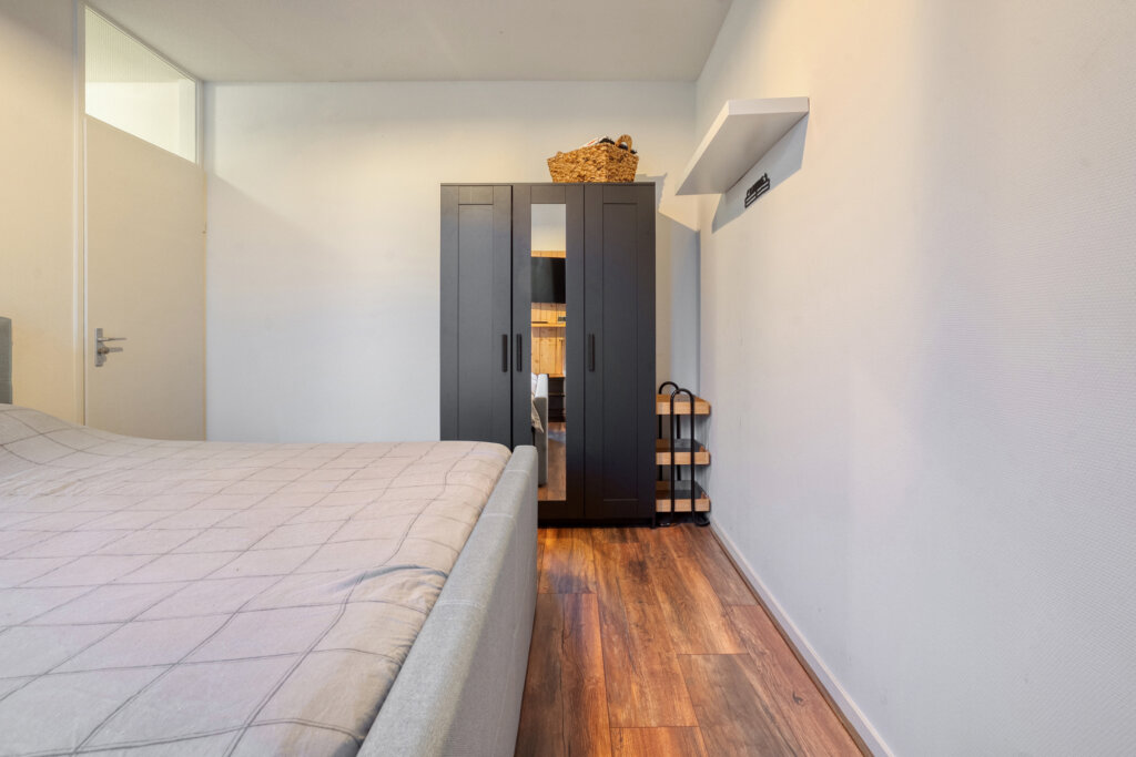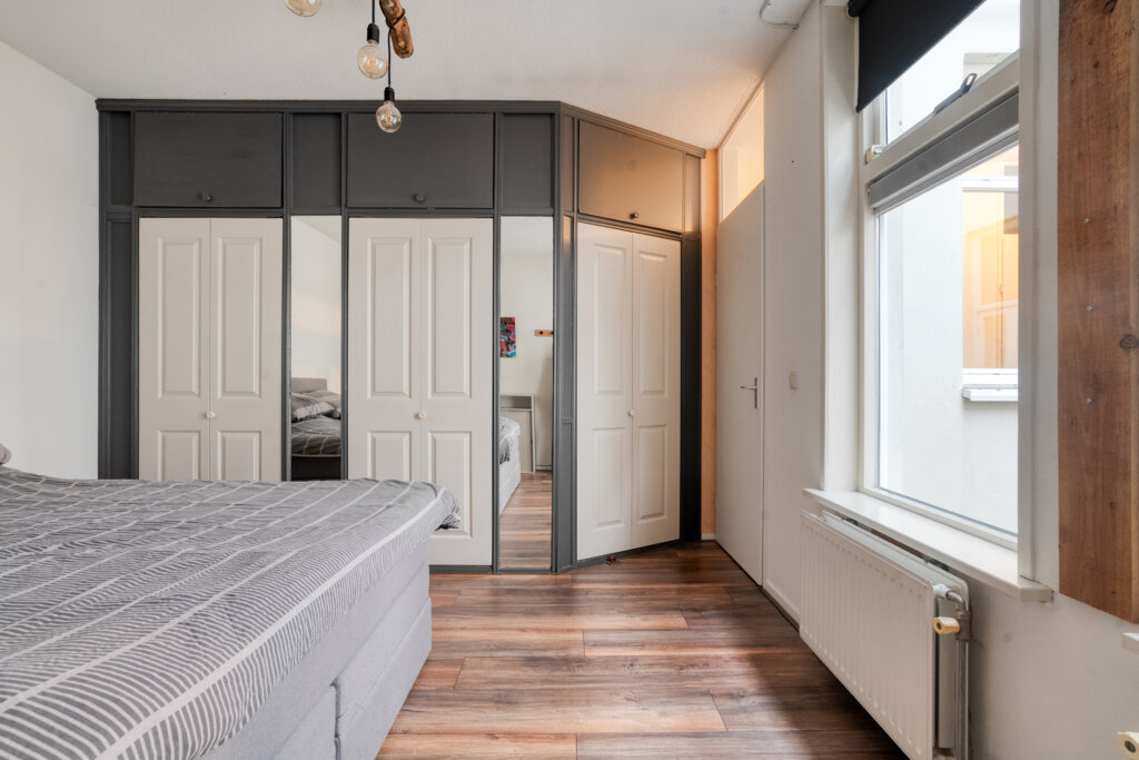 Aan de achterzijde van het appartement bevinden zich de twee slaapkamers. De grootste slaapkamer is voorzien van een vaste kastenwand met veel opbergruimte. Omdat de slaapkamers zich aan de achterzijde bevinden, hoor je hier niets van de geluiden van de winkelstraat.