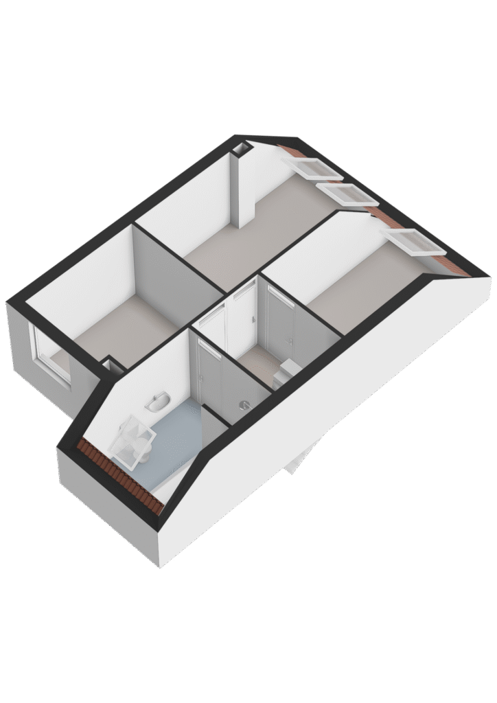 De overloop geeft toegang tot drie ruime en lichte slaapkamers. Dankzij de grote dakramen geniet je hier van een prettige lichtinval. De badkamer is praktisch ingericht en voorzien van een douche, ligbad, wastafelmeubel én toilet. Ook hier zorgt een dakraam voor natuurlijke ventilatie en daglicht.