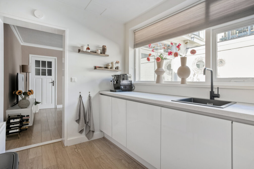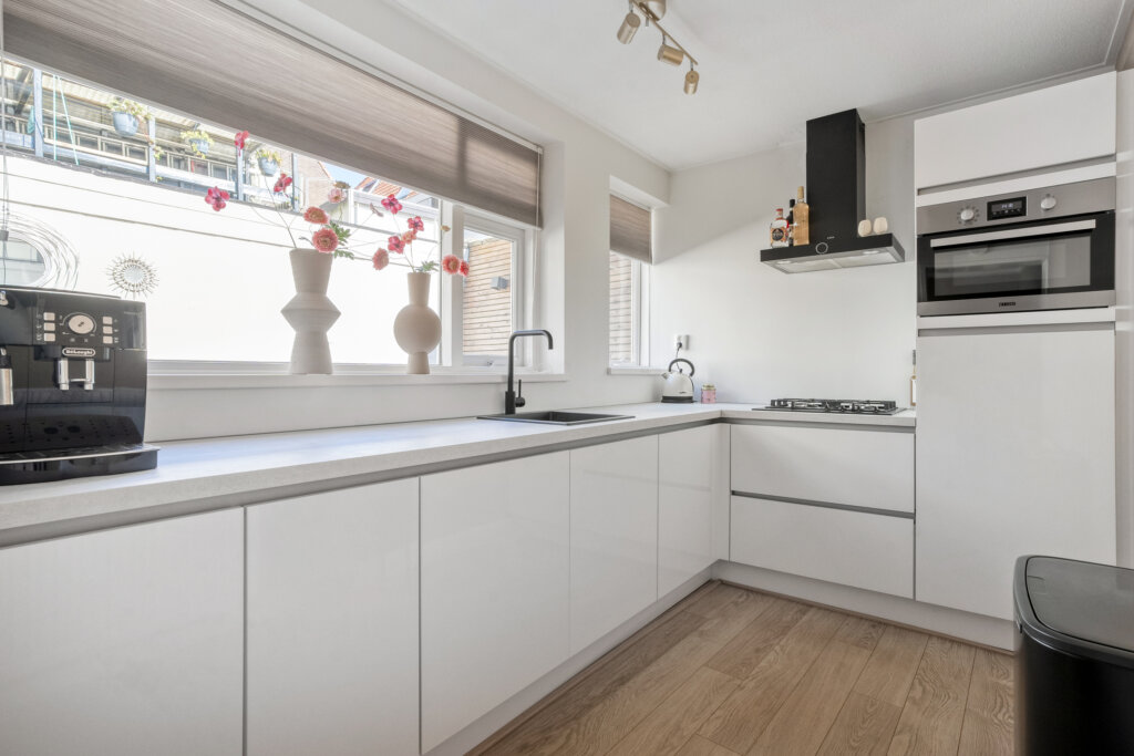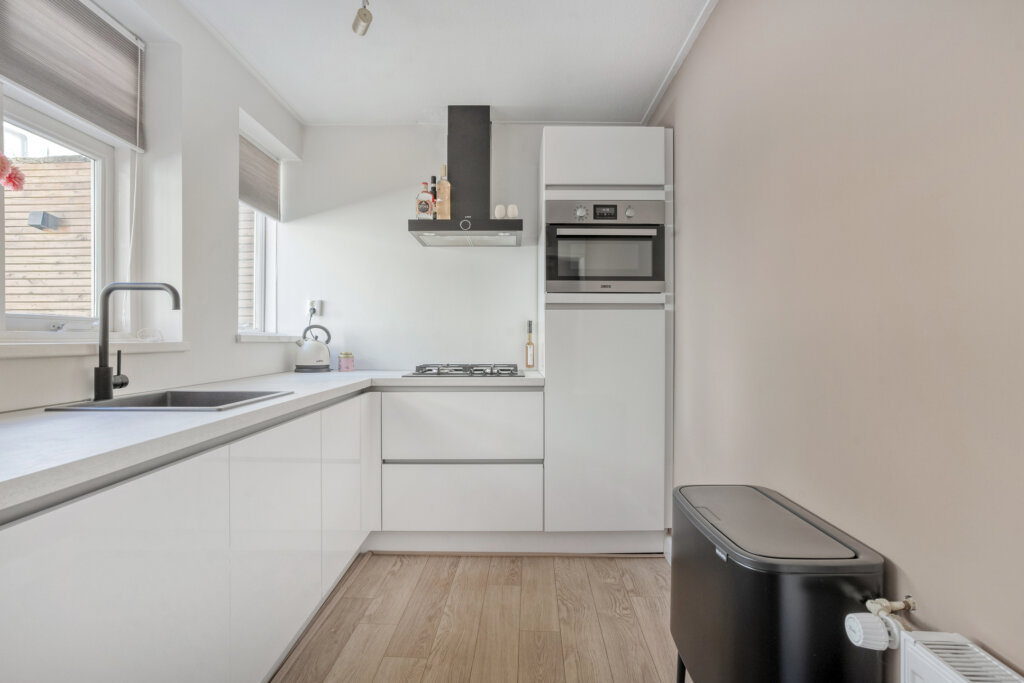 Via de voordeur kom je in de hal met trapopgang, modern toilet en de meterkast, via de hal kom je in de woonkamer. De lichte en ruime woonkamer biedt volop leefruimte en is voorzien van een mooie laminaat vloer. Dankzij de grote ramen aan zowel de voor als achterzijde geniet je van veel natuurlijk daglicht. Onder de trap zit een handige trapkast waar de wasmachineaansluiting te vinden is. Via de openslaande deuren bereik je de knusse binnenplaats waar je heerlijk van het ochtend zonnetje kan genieten, de binnen plaatst is voorzien van strakke bestrating en de muren zijn netjes geschilderd. Vanuit de woonkamer kom je in de ruime keuken die geplaatst is in 2021. De keuken is van alle gemakken voorzien en heeft veel opbergruimte, door de raampartijen in de keuken heb je veel natuurlijk licht en kijk je uit op de gezellige binnenplaats.