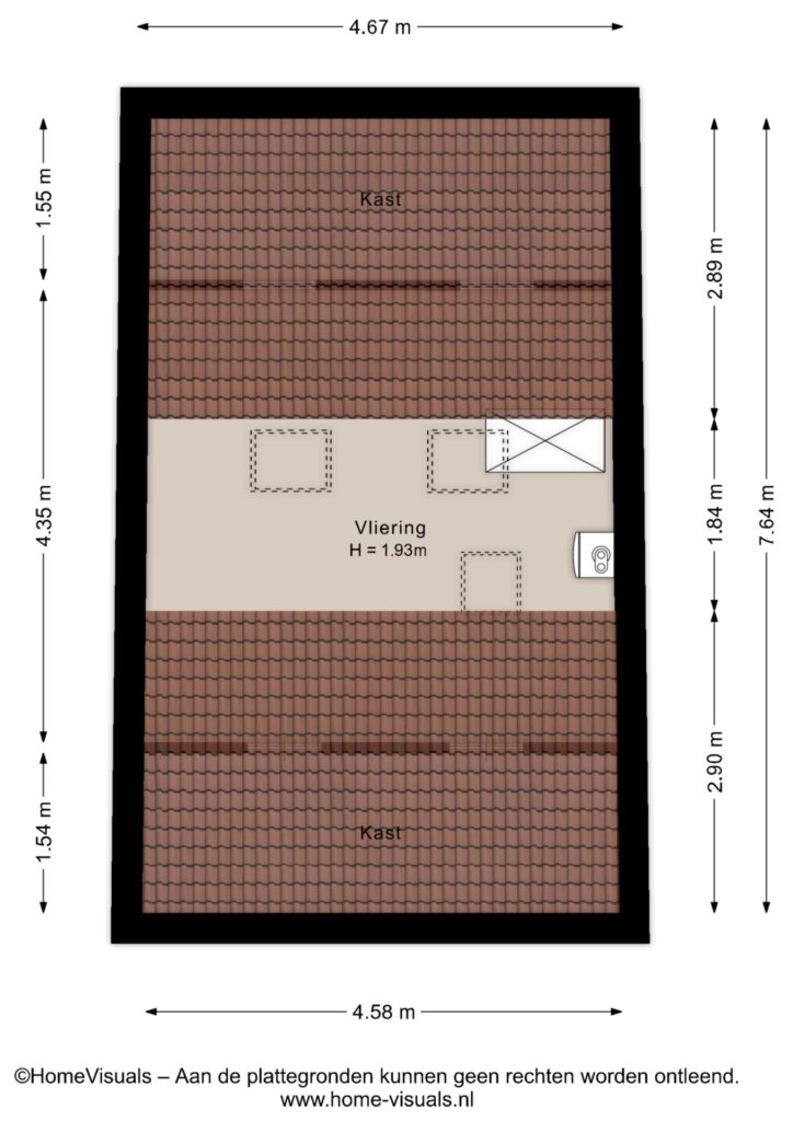 Riante zolder bereikbaar middels een vlisotrap. Het dakraam zorgt voor genoeg dachtlicht , aan beide kanten bevinden zich knieschotten voor nog meer opbergruimte. Deze ruimte is goed te gebruiken als opberg- hobby- en of na het plaatsen van een vaste trap te gebruiken als slaapkamer.