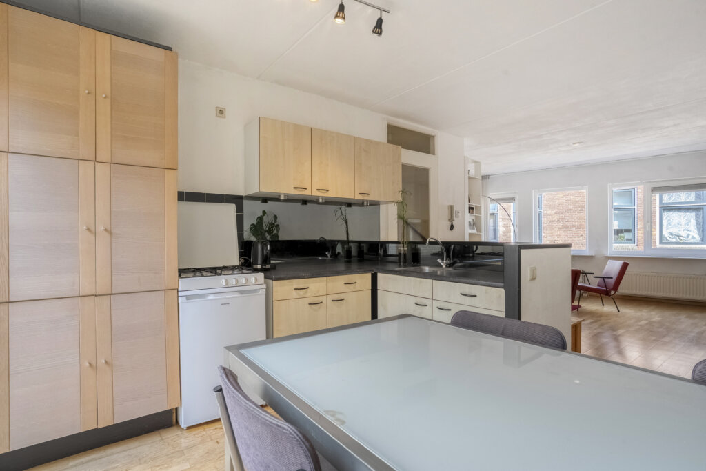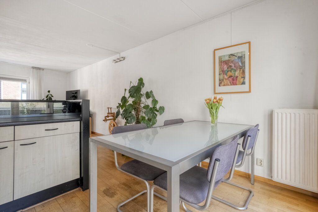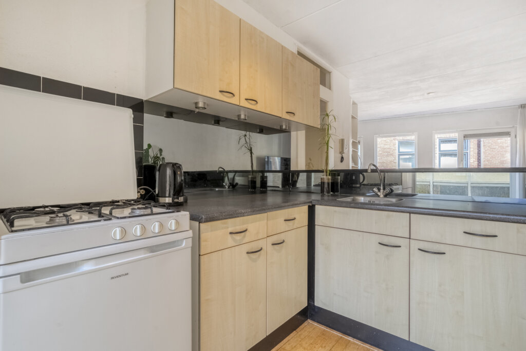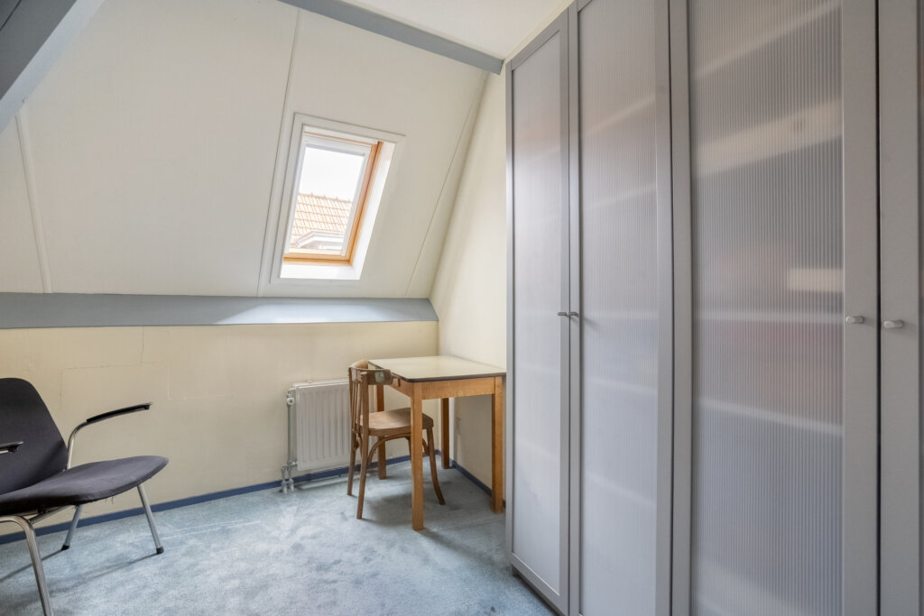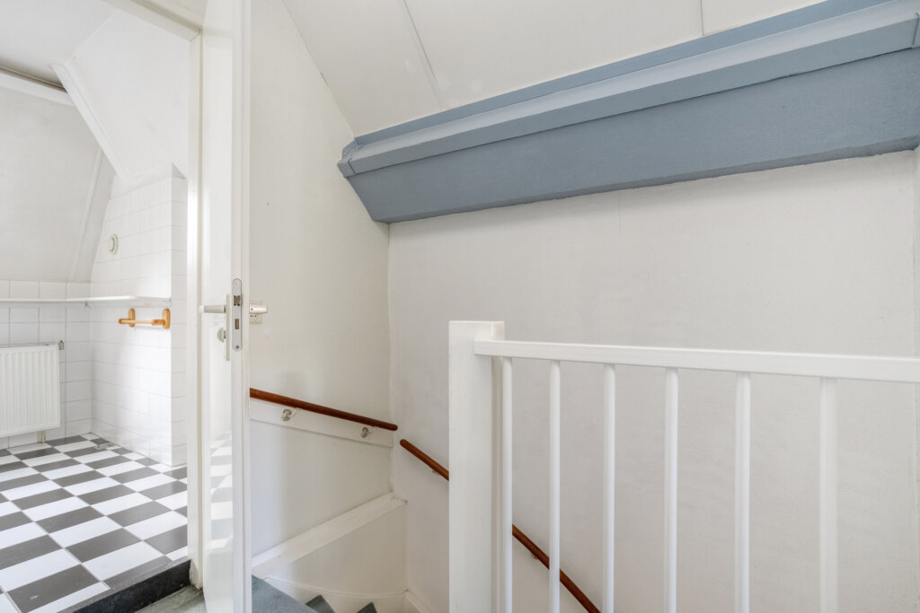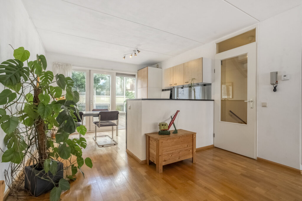 Deze eerste woonlaag vormt de centrale leefruimte van de woning en biedt een lichte en open indeling met voldoende ruimte voor een zithoek en eettafel. Via de openslaande deuren in de keuken kom je op je eigen dakterras. De keuken is open en heeft een praktische indeling, met voldoende werk- en opbergruimte. In de bijkeuken bevindt zich de aansluiting voor de wasmachine, de cv-installatie en een deur naar het dakterras.