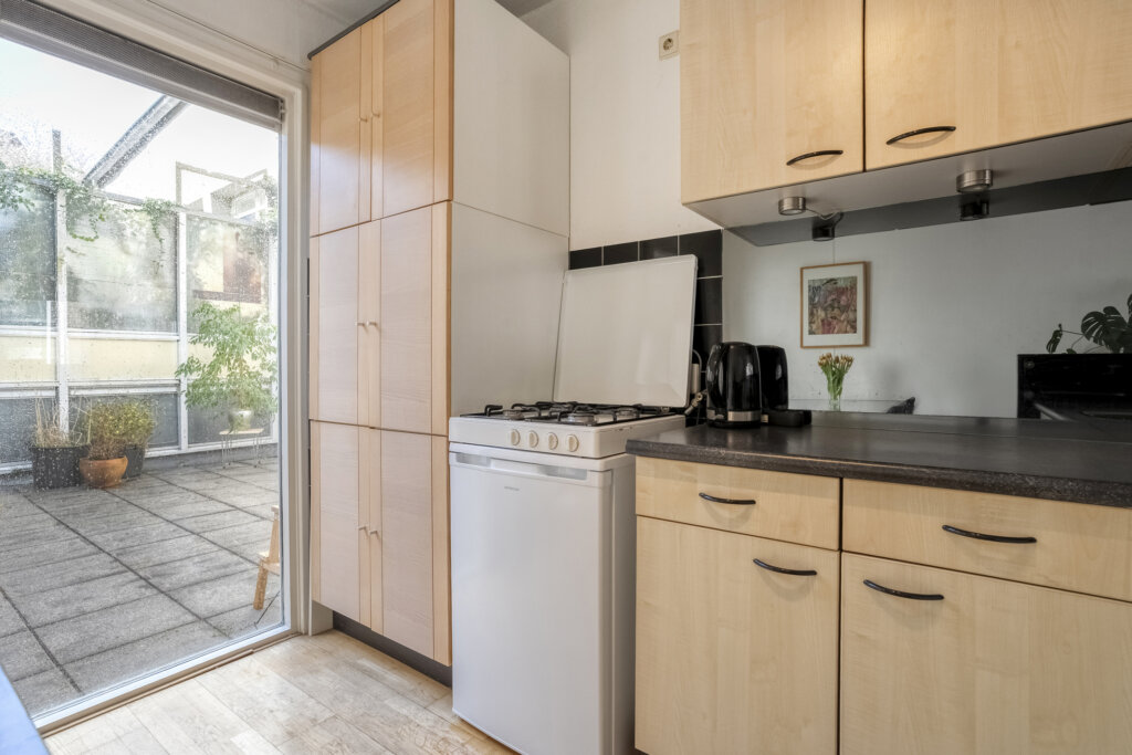 De woning beschikt over een dakterras, gericht op het zuidoosten, en is een fijne plek om even buiten te zitten midden in de stad. Het dakterras biedt veel privacy en door de ligging heb je hier veel zonuren.