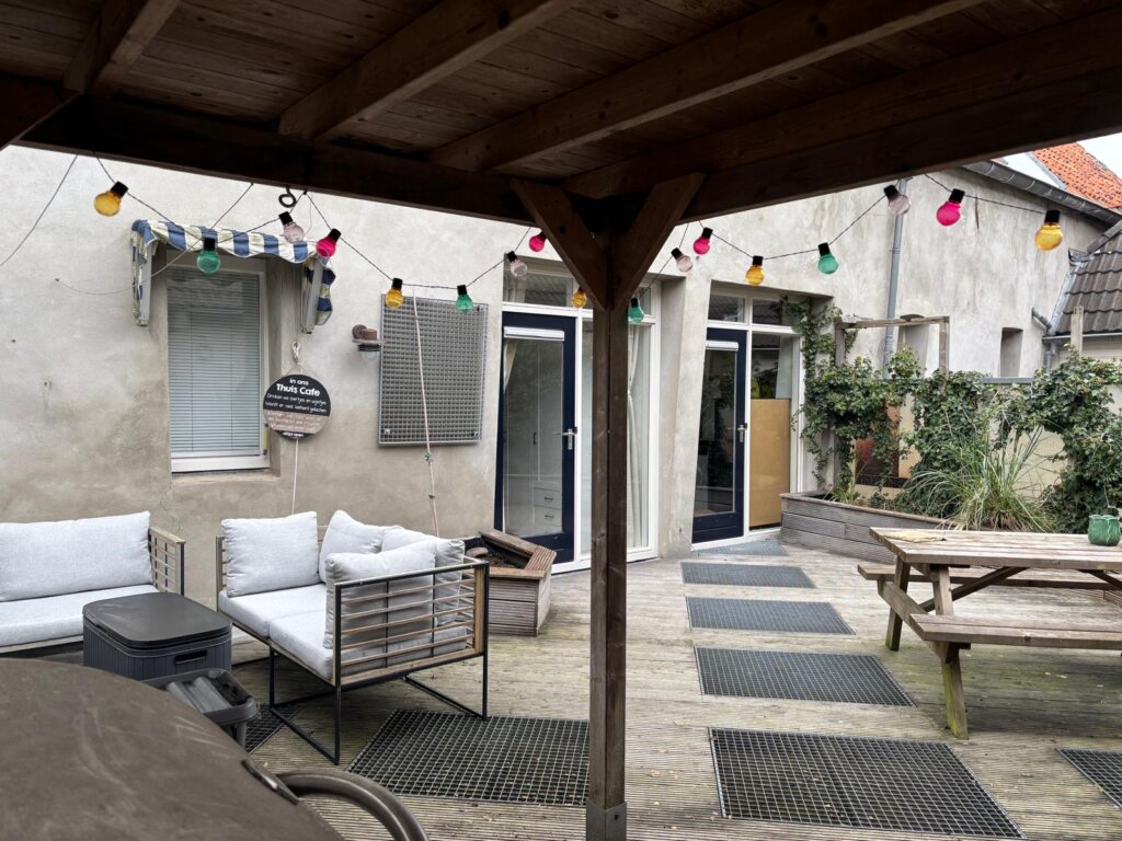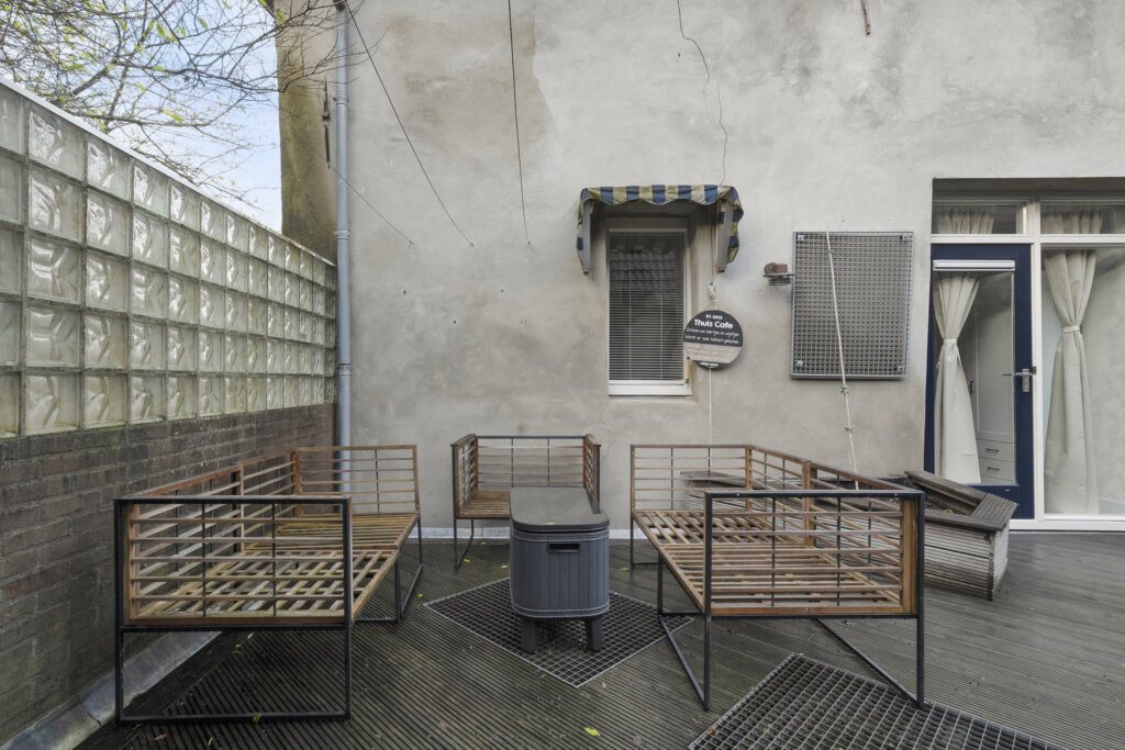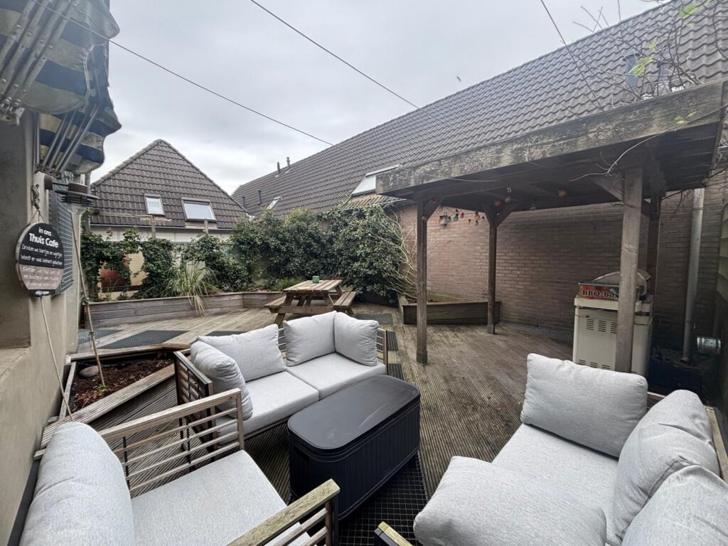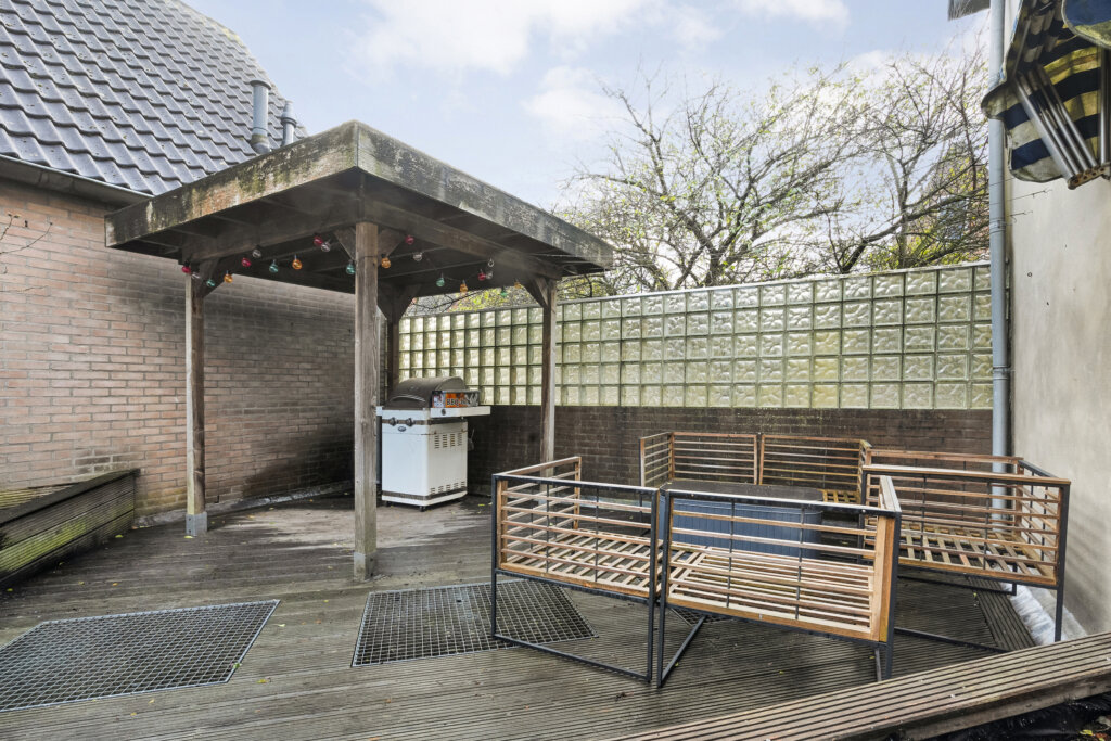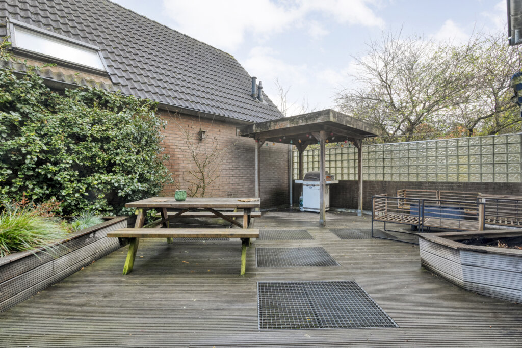 Het dakterras van circa 48 m² is gelegen op het zuiden en vormt een fantastische buitenruimte midden in de stad. De houten vlonders, de gezellige overkapping en de beplantingsbakken zorgen voor een groene, gemoedelijke sfeer. Hier kun je volop genieten van zon, rust en privacy, een echt verlengstuk van de woning.