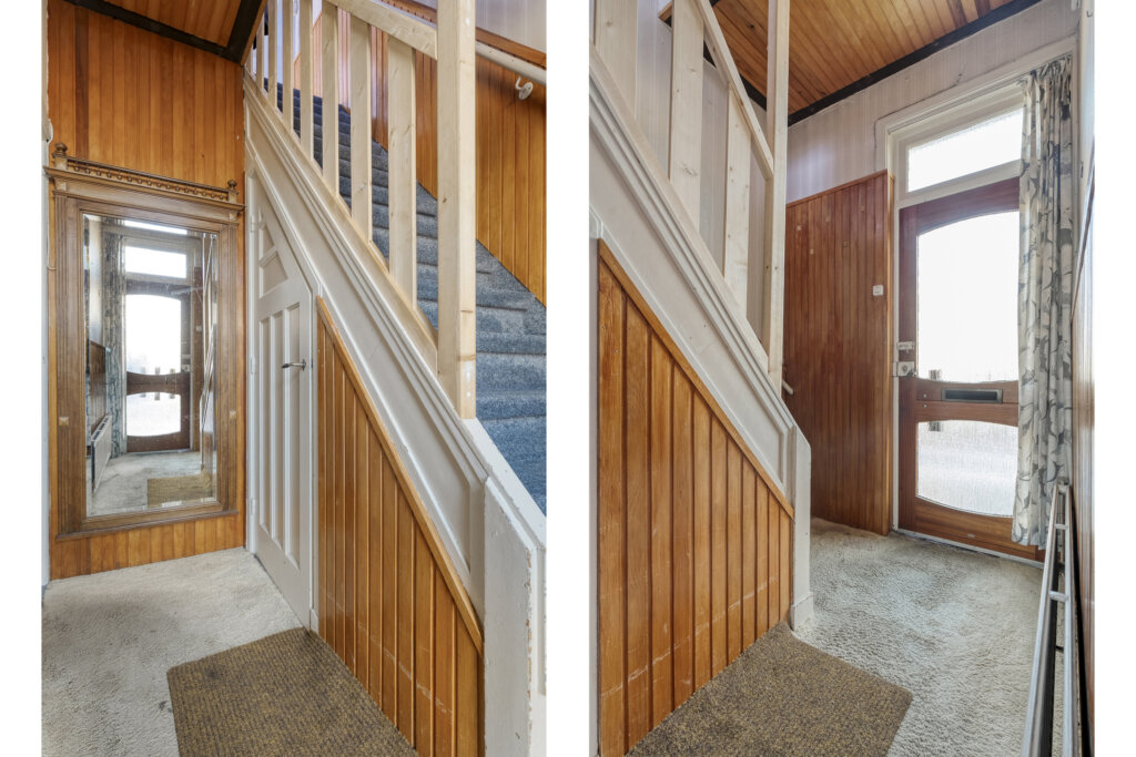 Via de entree kom je binnen in de hal, waar zich de trapopgang naar de eerste verdieping bevindt. In de hal is een praktische trapkast aanwezig, waarin de meterkast is gesitueerd. Vanuit de hal heb je toegang tot de woonkamer.