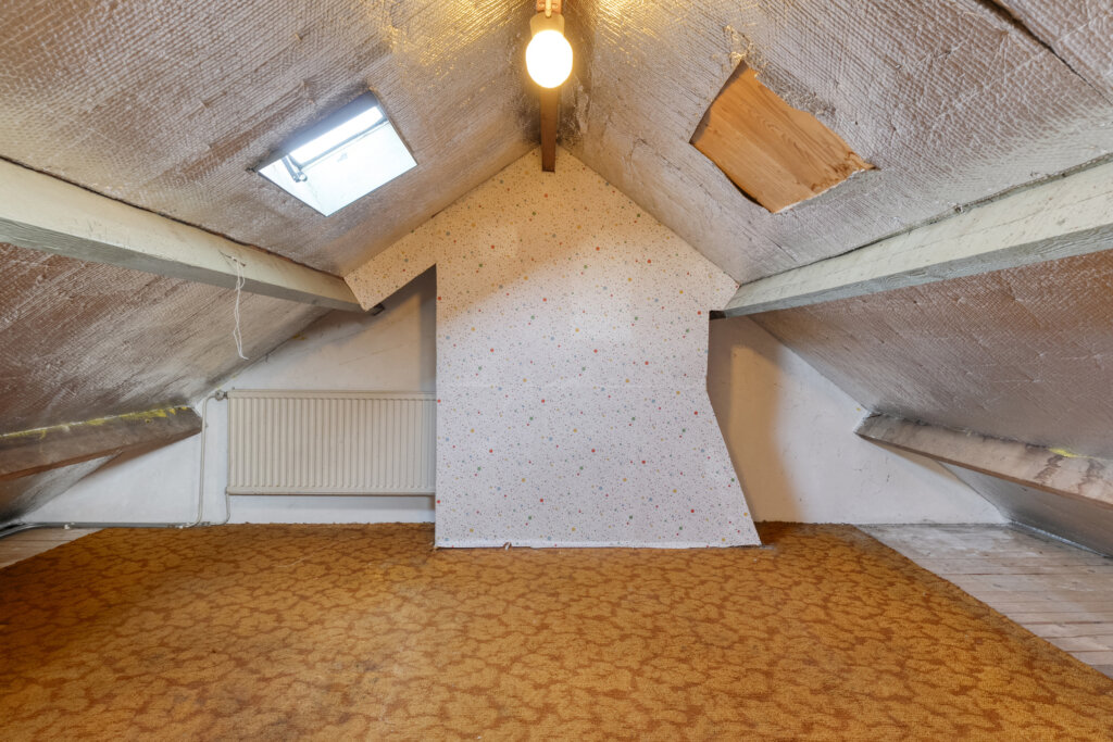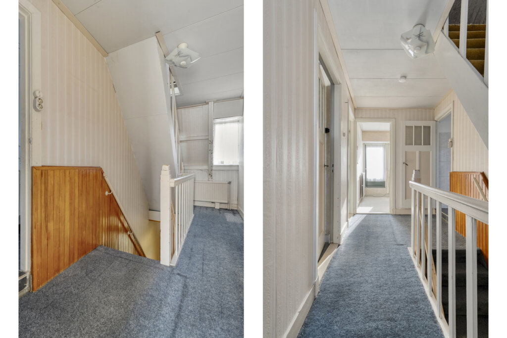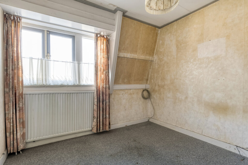 Via een vaste trap bereik je de tweede verdieping. De overloop biedt toegang tot een vierde slaapkamer. Door de schuine dakvlakken heeft deze kamer een karakteristieke indeling en vormt deze verdieping een volwaardige toevoeging aan de woning.
