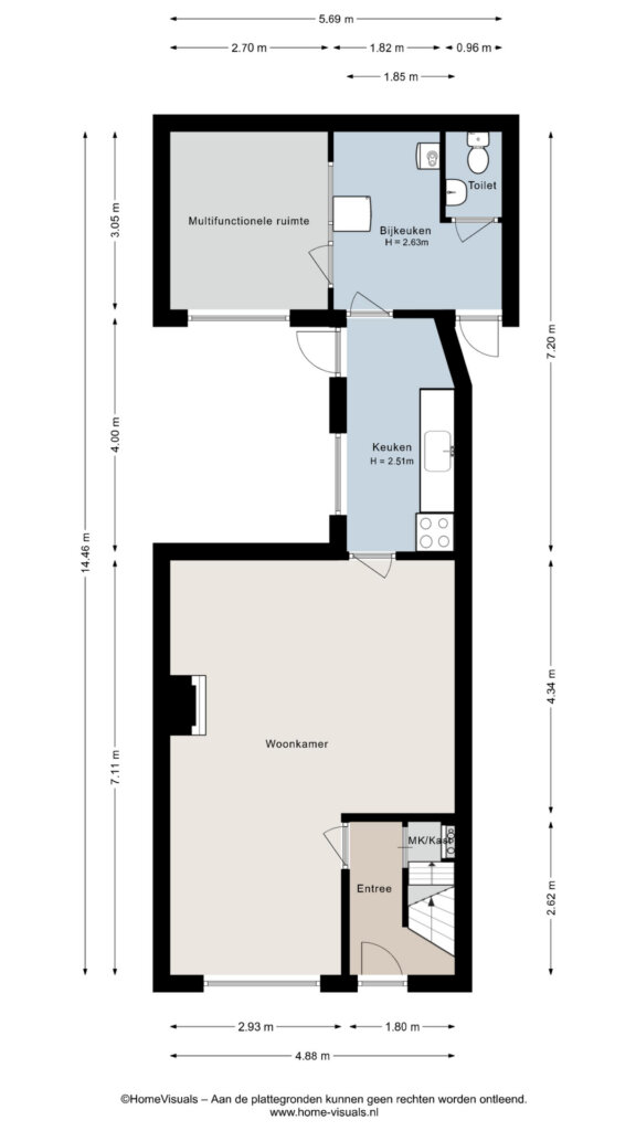De woning heeft een verrassende indeling en biedt veel gebruiksruimte. Dankzij de extra kamer op de begane grond, de bijkeuken met aparte zij-entree is deze woning bijzonder geschikt voor het combineren van wonen en werken aan huis, bijvoorbeeld voor een praktijk, atelier of kantoorruimte met eigen toegang.