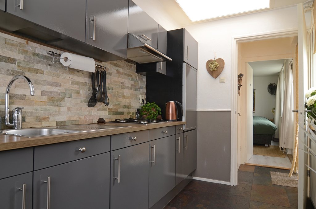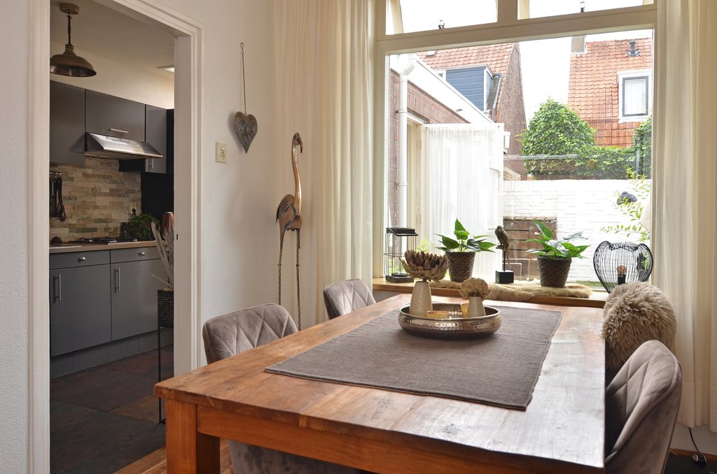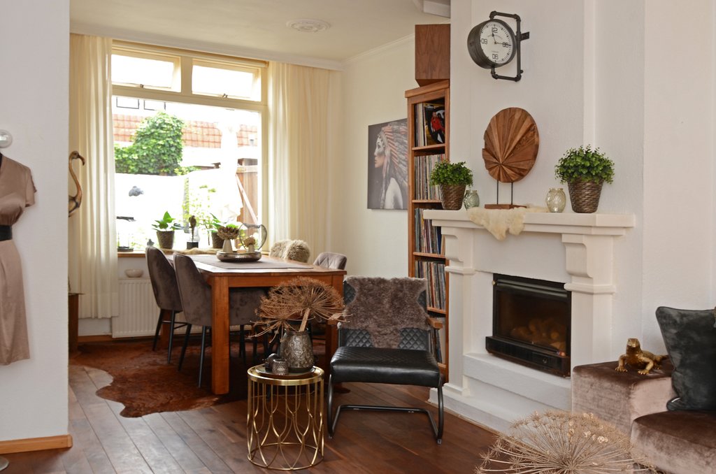 Via de hal heb je toegang tot de gezellige woonkamer met gashaard. De woonkamer loopt over in het eetgedeelte. Hiervandaan heb je toegang tot de half open keuken. In de keuken bevindt zich ook de kelderkast. Ideaal voor opbergruimte en voor een eventuele extra koelkast of vriezer. Vanuit de keuken kom je in een hal, en deze hal geeft je toegang tot de zonnige plaats, het toilet en een extra gecreëerde slaapkamer op de begane grond. De slaapkamer is voorzien van een groot raam die uitkijkt op de plaats en ook voorzien van een extra deur naar de plaats toe.