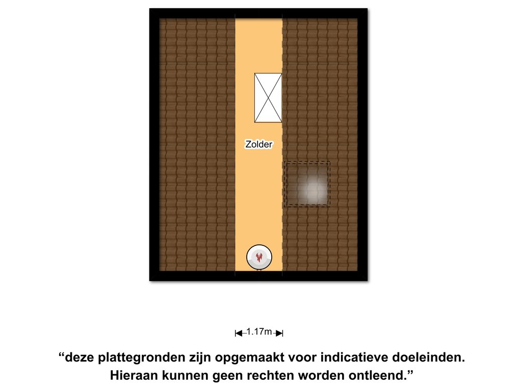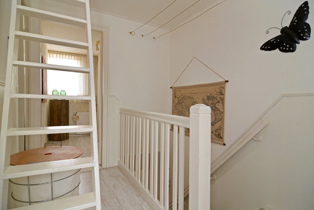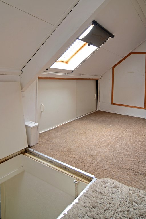 Via een semi vaste trap komt je via een luik op de zeer ruime vliering voorzien van daglicht d.m.v. een dakraam.