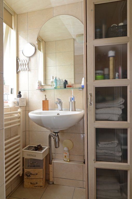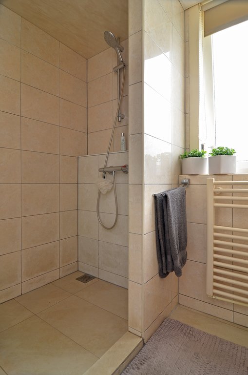 Op de eerste verdieping bevinden zich 3 slaapkamers en de badkamer. De badkamer is compleet betegeld en is voorzien van een douche, een handdoekradiator en een wastafel.
