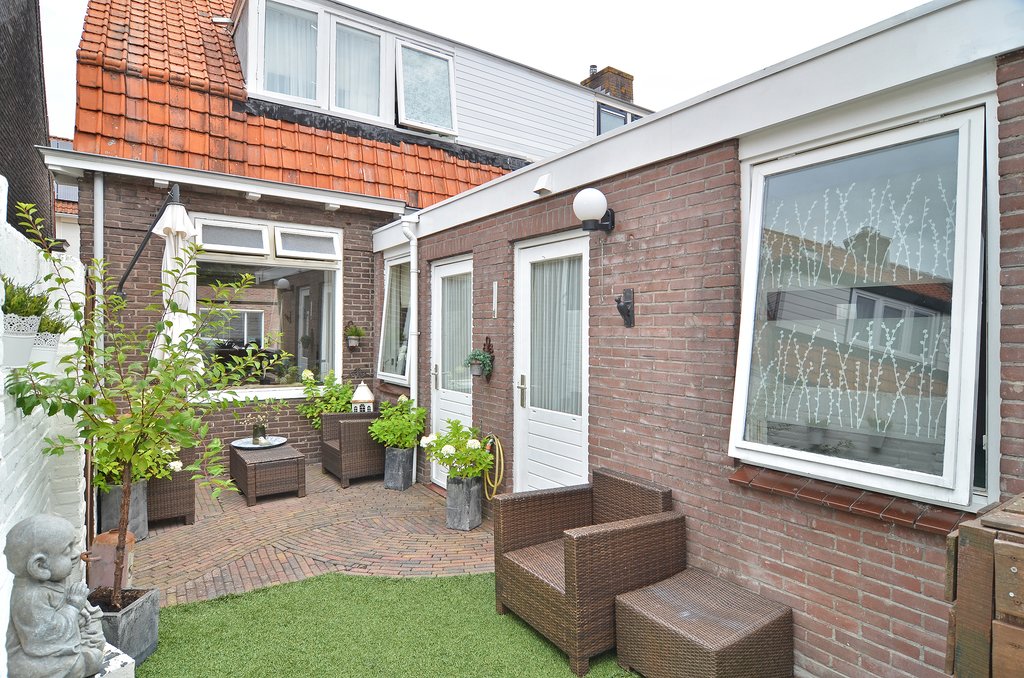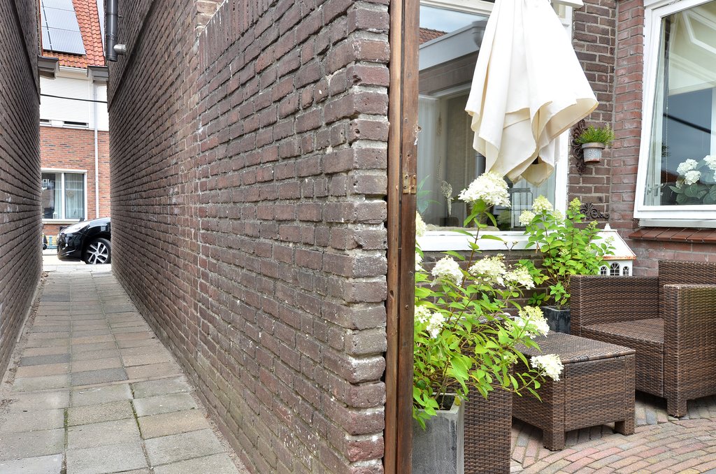 Via de achterdeur en de deur vanuit de slaapkamer kom je op de zonnige achterplaats.